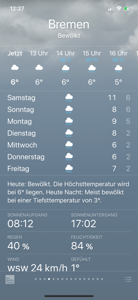 Kurz bevor es zum letzten Arbeitstermin geht, habe ich mich nochmals eben der Wetterplanung für die ersten Etappen gewidmet. Hier das Ergebnis (Ich glaube, das muss ich nochmals üben… ;-)):