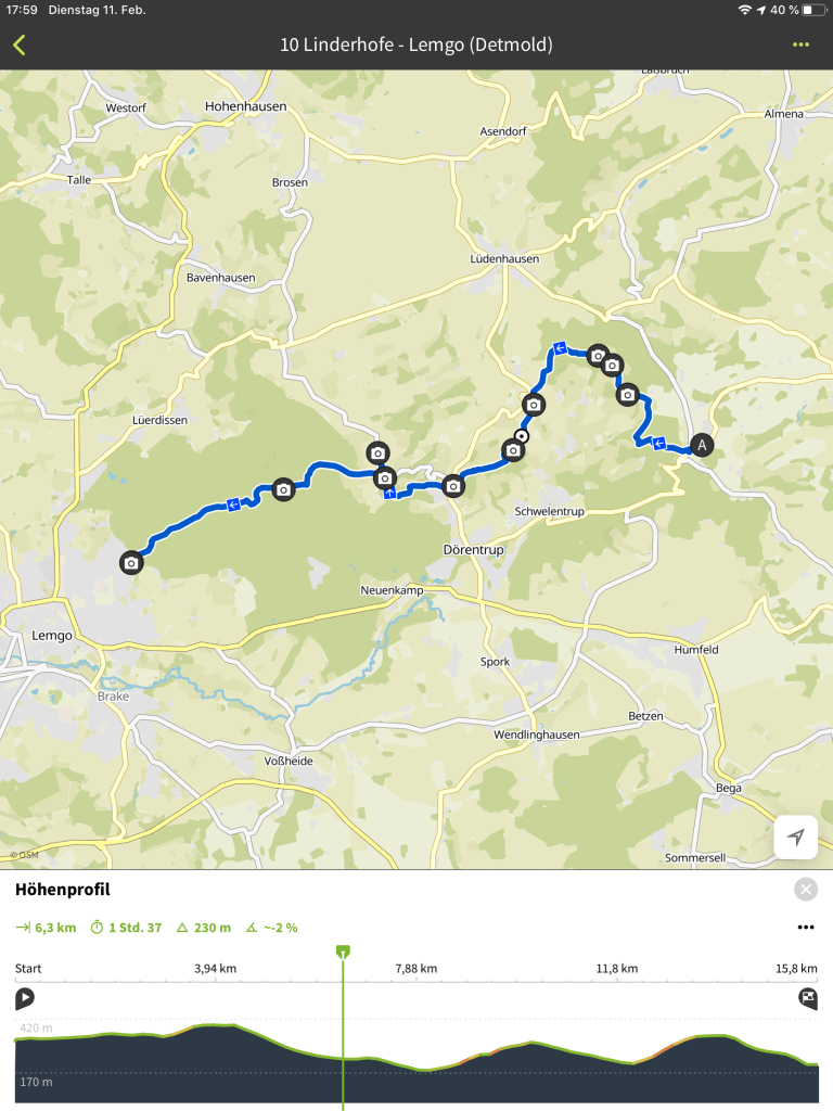 Ich für meinen Teil habe mir ein „Taxi“ aus Kiel bestellt, das eh in der Nähe unterwegs war, um heute und morgen die Etappe abzukürzen und um einen netten Abend mit dem Taxifahrer (meinem Bruder) zu verbringen. Wir waren in Lemgo verabredet. Frau Komoot versprach für das Teilstück Lemgo-Detmold sowieso eher langweiliges Terrain.