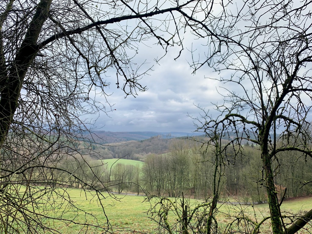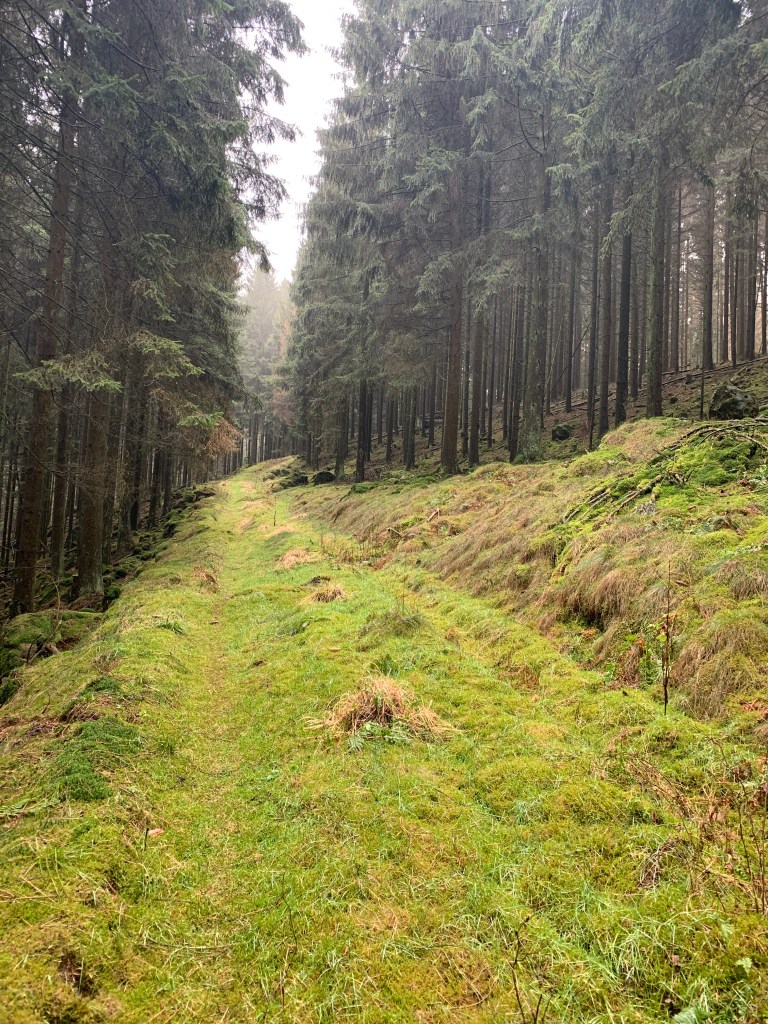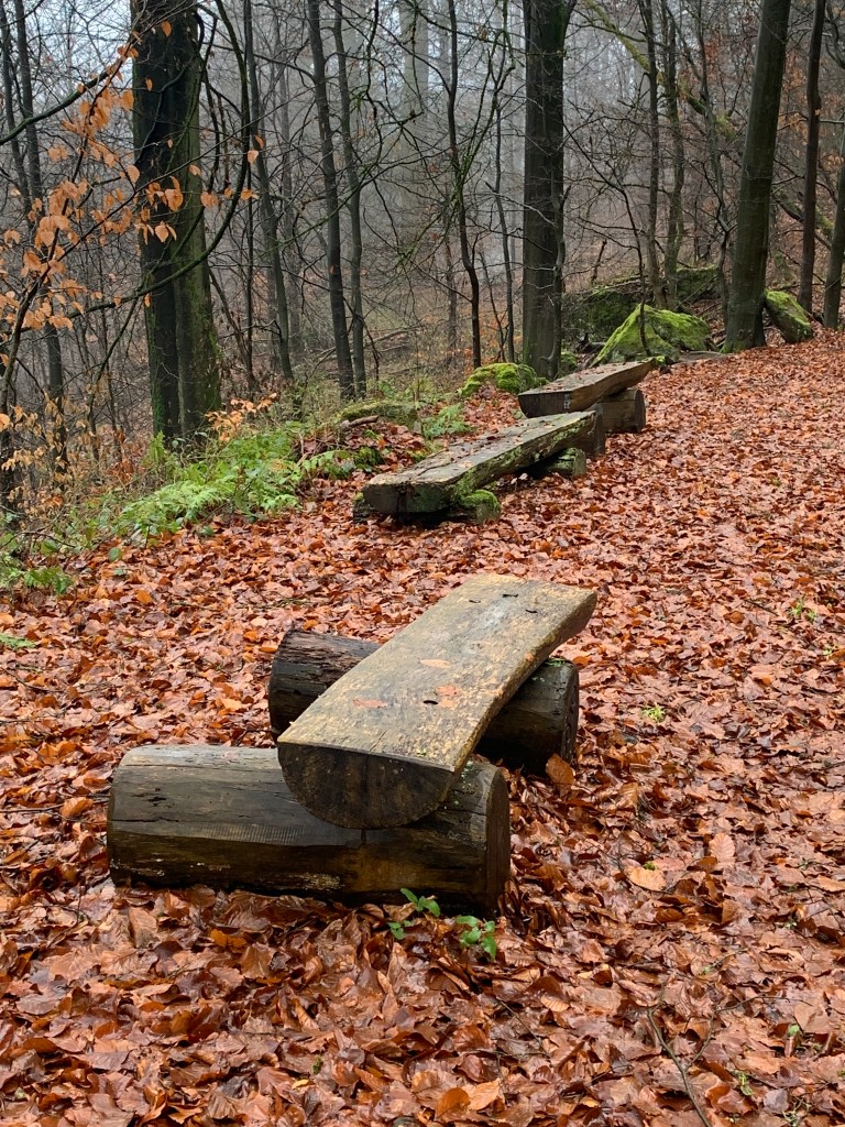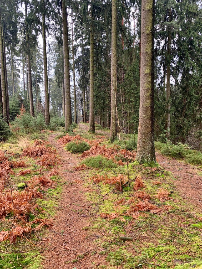 Heute morgen im Bett konnte ich mir auf einmal nicht mehr vorstellen, heute NICHT stundenlang an der frischen Luft durch vermatschte Wälder zu laufen. Außerdem versprach die Wetter-App wärmere Temperaturen und nur morgens ein wenig Regen (von wegen!). Beim Frühstück habe ich deswegen Frau Komoot belatschert, ob sich die 33 Kilometer bis Marsberg nicht irgendwie reduzieren ließen. Sie hat alles gegeben (29 Kilometer), und so waren wir kurz vor zehn wieder im Wald unterwegs.