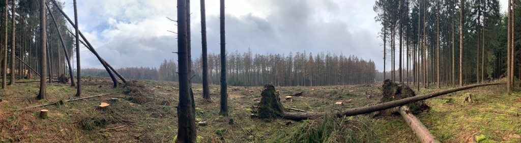 Worüber man nicht rätseln muss, ist der mitteldeutsche Wald. Denn dort schaffen Borkenkäfer und seine Freunde (und natürlich die diversen Stürme) Tatsachen. Liebes Lottchen, sieht es hier überall aus! Wie man aus den Medien weiß, sind die Schäden groß, die Holzpreise im Keller und die Wälder möglicherweise nicht zu retten. Das jedoch über Stunden und Stunden mit eigenen Augen zu sehen und mit Menschen, die es direkt betrifft, ins Gespräch zu kommen, ist etwas anderes.
