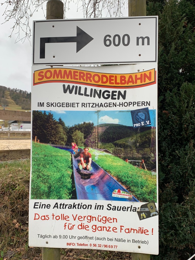 Mein Hotel-Chef dazu: In Willingen ist alles ein bisschen anders. Da wird auch schon mal in den Kneipen und Restaurants geraucht. Die nächsten Polizei-Stationen sind viel zu weit entfernt, um das zu kontrollieren. Das in Brilon ist eh in einem anderen Bundesland, die fühlen sich nicht zuständig (das schon wieder…), und von Korbach kommt selten mal jemand hier hoch. Ach so, na dann! Raucherinnen und Raucher Deutschlands, auf nach Willingen!