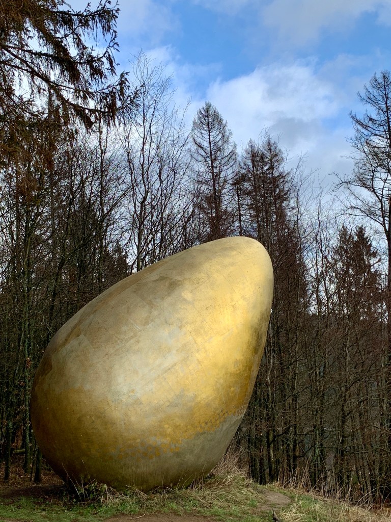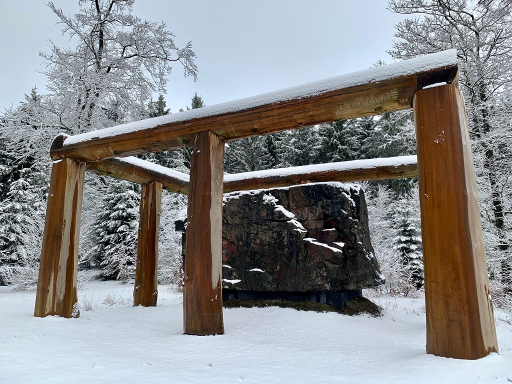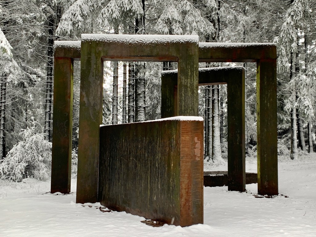 Zusätzlich hat Frau Komoot mal wieder eine Besonderheit aus ihrer Trickkiste gezogen, und so waren wir heute nicht nur auf dem E1 und auf dem Rothaarsteig unterwegs, sondern auch auf einem Skulpturen-Weg. Das waren teilweise doch sehr beeindruckende Gebilde, die da im Wald rumstanden – Kunst für alle in der Natur!