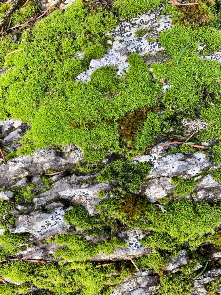 Also vertrieb ich mir die Zeit damit, die Vielfältigkeit der Spezies „Moos“ zu studieren und eine kleine Moos-Sammlung anzulegen. Schon erstaunlich, in welcher Formen- und Farbenvielfalt mir dieses Gewächs auf meinem Weg begegnet. Auch Schweinehund war voll in seinem Element!