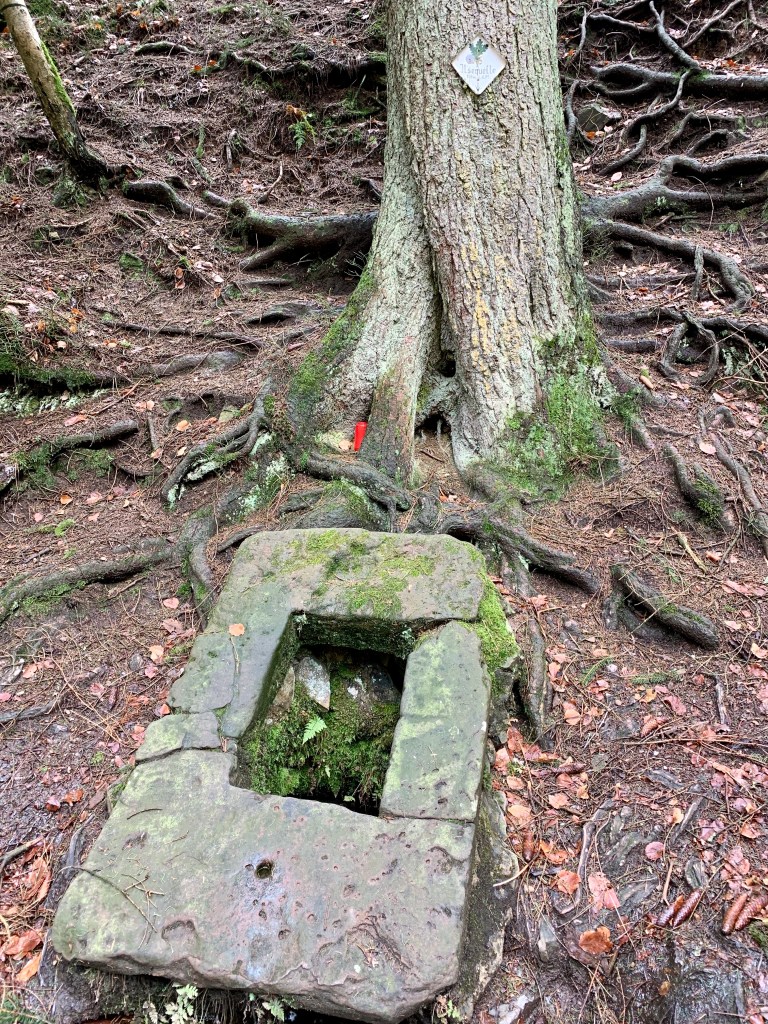 Und Frau Komoot? Die tut immer so, als wäre sie nur für die schnöde Wegführung zuständig und dann kommt sie unverhofft mit was Hübschem um die Ecke. Und hübsch wurde es, als ich nach 10 Kilometern auf das Ilsetal stieß, ein verwunschenes Bachtal, an dessen Ende die Ilsequelle liegt. Wie man auf der Infotafel erfährt, ist die heilende Wirkung des Quellwassers seit dem Mittelalter bekannt und gehörte die Ilsequelle zu den bekanntesten Heilbädern der damaligen Zeit. Tausende Heilung Suchende pilgerten teilweise von weit her zur Quelle. Und nun ich! Klar, dass ich mir ein Schlückchen des heilenden Trunks in meine Tatonka-Thermos abfüllte. Heilung ist immer gut!