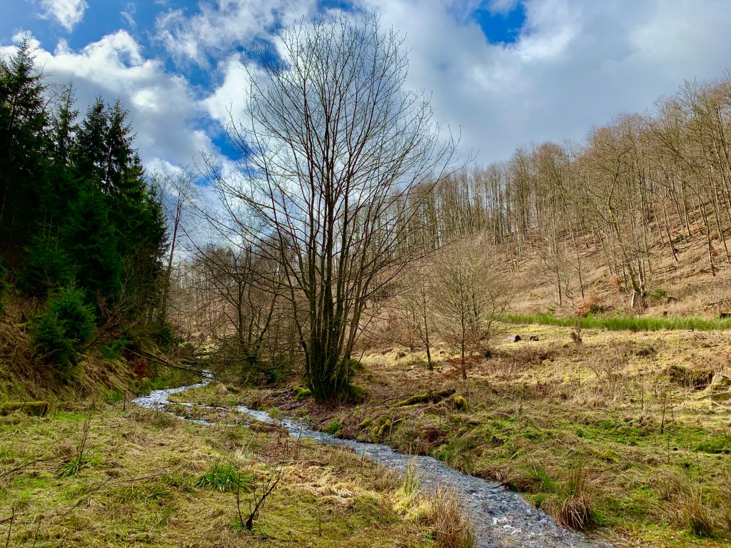 Heute übernachte ich im Forsthaus Lahnquelle. Sie, die Lahnquelle bzw. ihr Quelltopf, befindet sich direkt vor meinem Fenster. Würde ich da also reinspringen, würde ich nach 245 Kilometern im Rhein rauskommen. Hübsche Vorstellung…