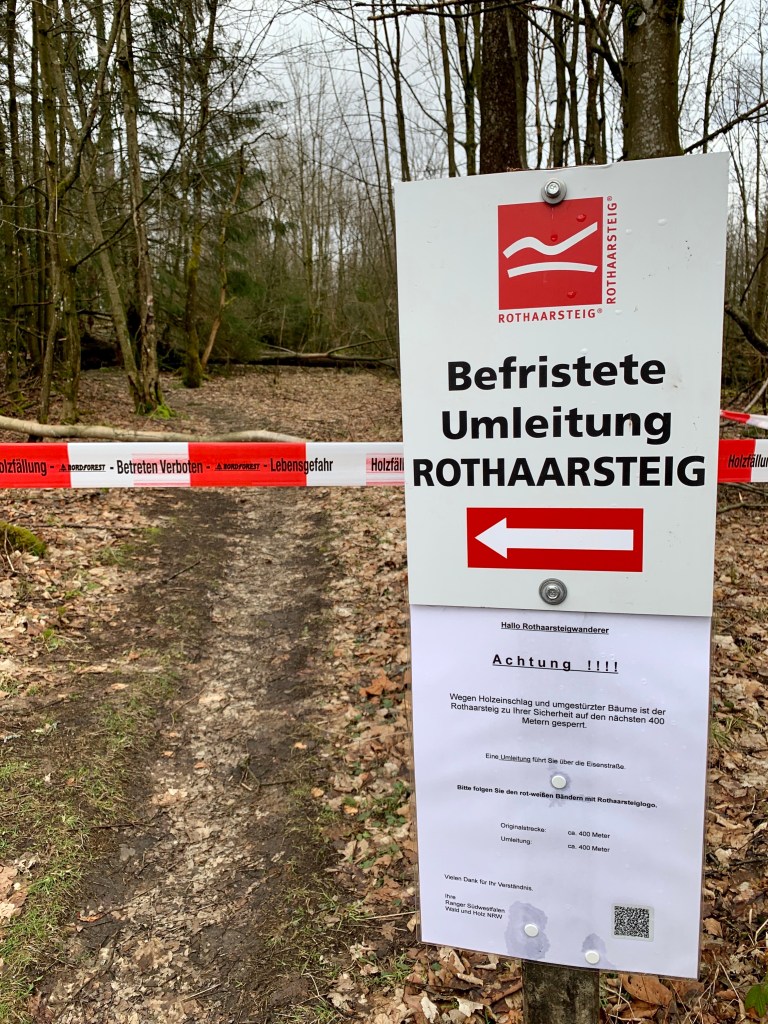 Auf dem Rest der Strecke begegneten mir das eine oder andere bemooste Geschöpf, und es gab auch endlich mal eine klare Ansage bezüglich der Sperrung der Wälder nach den Stürmen. Dummerweise kam ich von hinten…