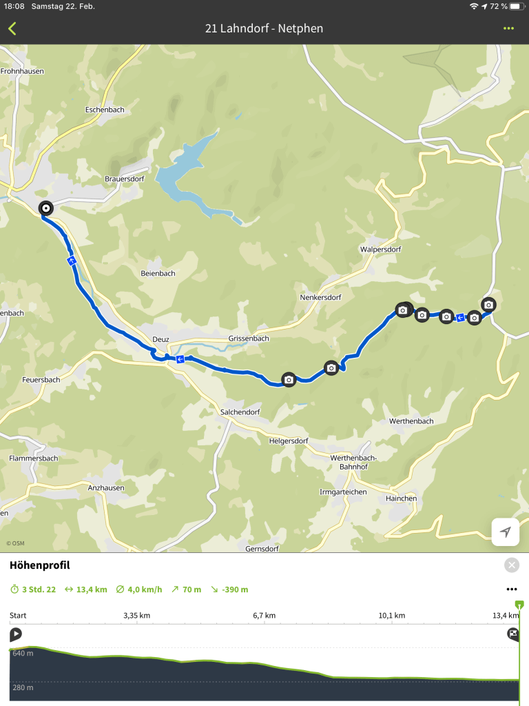 Gegen 12 Uhr erreichte mich dann – angesichts der im europäischen Gesamtkontext doch sehr divergierenden Wetterprognosen – ein spontan-schwesterlicher Gegenvorschlag zum verregneten-es-pfeift-der-Wind-so-kalt-Westerwald, der da hieß: Südfrankreich bei Sonne und 15 Grad. Was soll ich sagen? Wir, Schweinehund, Frau Komoot und ich konnten nicht widerstehen. Die Aussicht auf ein wenig sonnige Wärme, auf südfranzösisches Essen und Lebensart waren ZU verlockend. Die gute Schwester hat alles organisiert, und so endete meine Etappe heute nach 13,4 Kilometern in Netphen an der Bushaltestelle, während tatsächlich die ersten Tropfen fielen.