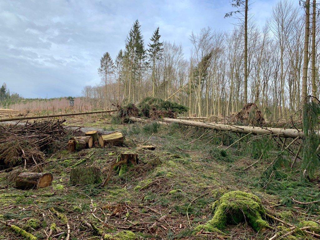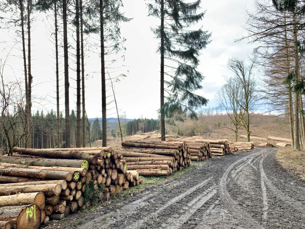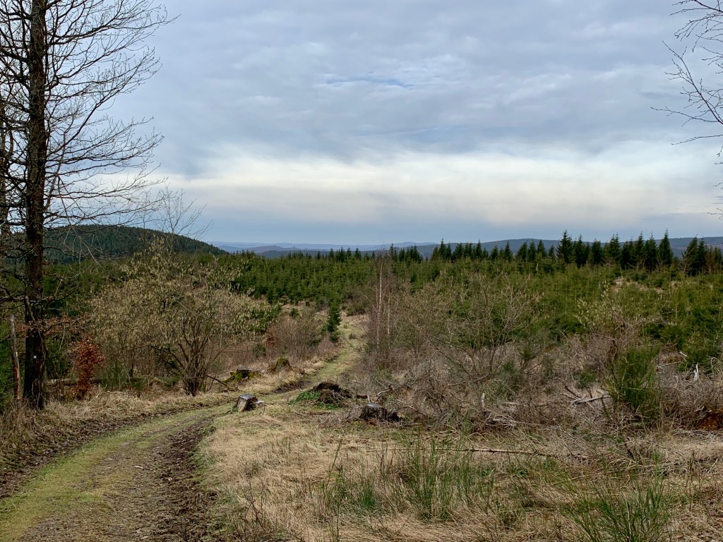 Doch zunächst standen die üblichen verwüsteten Wälder des noch Rothaargebirges auf dem Programm, zudem hübsche Ausblicke ins Siegerland und auf die anrollende Regenfront.