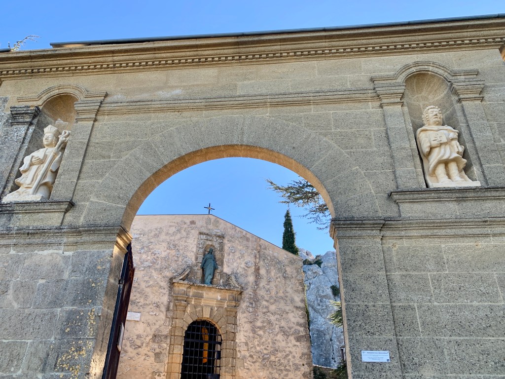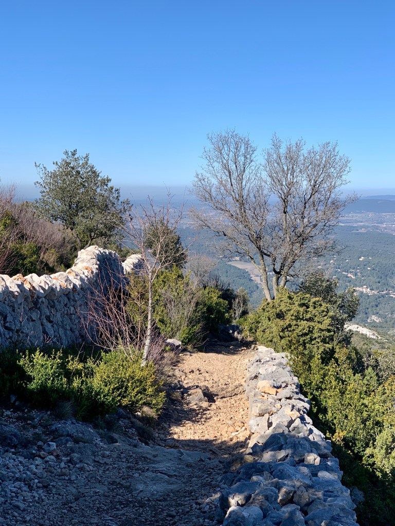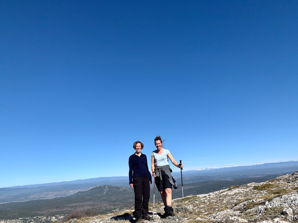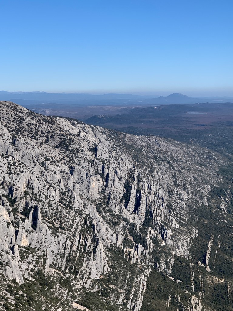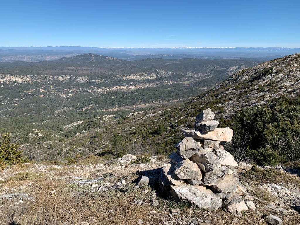 Nach dem Aufstieg gab es oben zunächst eine kleine Einsiedelei und das Croix de Provence – das Kreuz der Provence. Danach folgte eine wunderschöne Wanderung entlang des Grats. Und ja, der aufmerksame Betrachter hat es möglicherweise schon gesehen, von oben sah man die schneebedeckten Alpen am Horizont. Aber nicht nur das. Auch in die anderen Richtungen waren die Ausblicke grandios! Da fiel es fast ein wenig schwer, den Abstieg in Angriff zu nehmen. Wir hatten uns nicht um eine Rückfahrtmöglichkeit gekümmert, aber unten angekommen stand wie durch ein Wunder ein Bus für uns bereit. (Natürlich nicht extra für uns, ein Linienbus, so ein Zufall, aber was ist schon Zufall?) Wir rein, Türen zu und los! Toll!