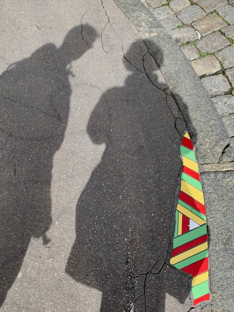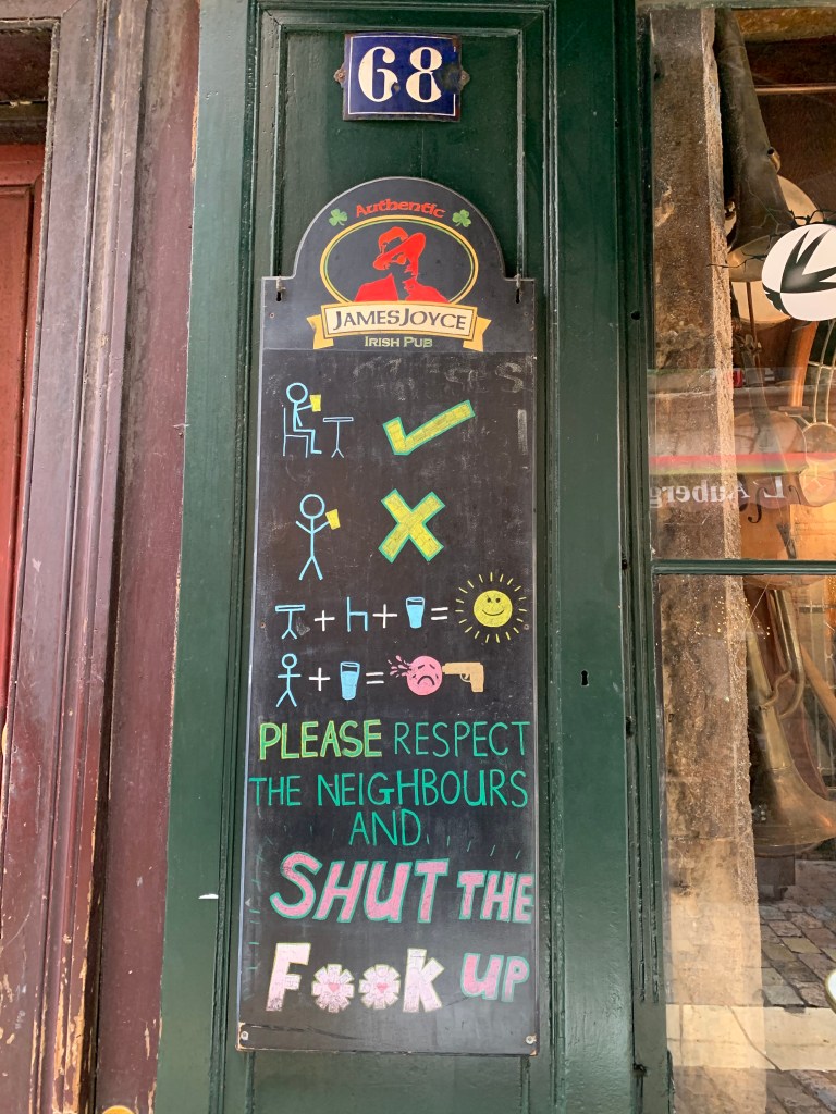 Frau Komoot schmollte etwas, weil ich es doch tatsächlich wagte, einen ANALOGEN Stadtplan mitzuführen (des Überblicks und der eingezeichneten Touri-Highlights wegen) und sie „nur“ zur digitalen Dokumentation der Tour abstellte. Sie murmelte etwas von „undankbarem Pack“ und trollte sich in die Jackentasche. Schweinehund trottete willig neben uns her und wurde regelmäßig mit Crêpes, unerwartet auftauchenden Fotomotiven oder den Scherzen des Bruders bei Laune gehalten.
