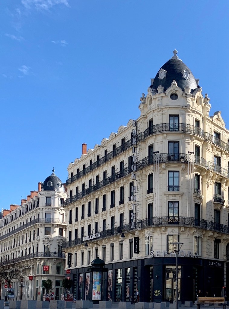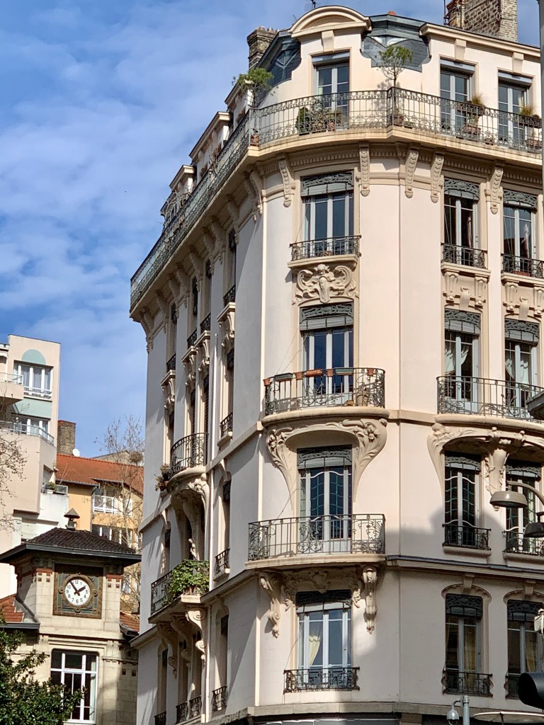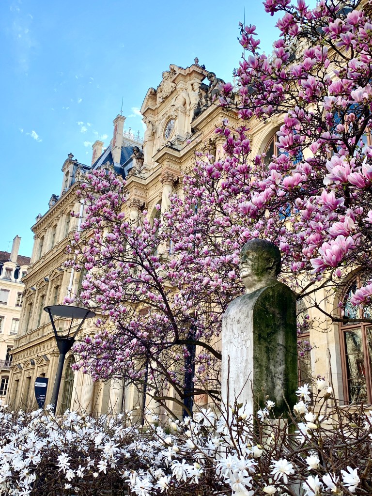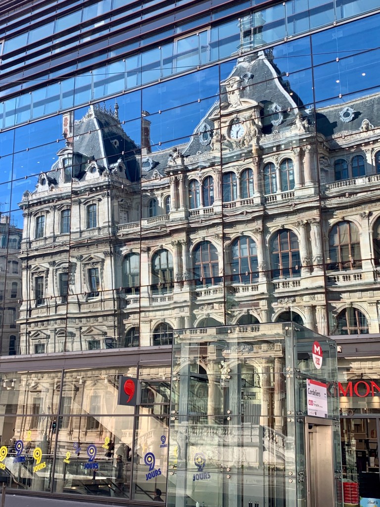 Wie sich zeigte, kann auch Lyon mit tollen bourgeoisen Altstadthäusern aufwarten, die sich nebst blühenden Magnolienbäumchen oder gespiegelt in einer hochmodernen Glanzfassade ganz vorzüglich und prestigeträchtig ausnehmen.