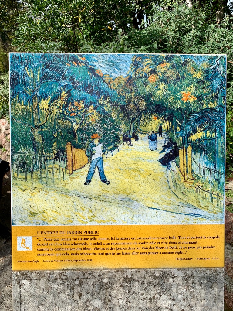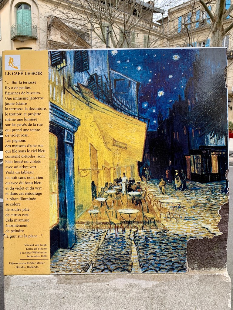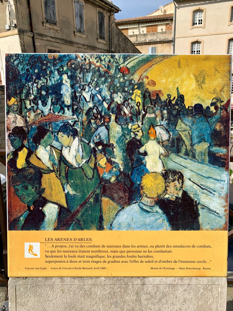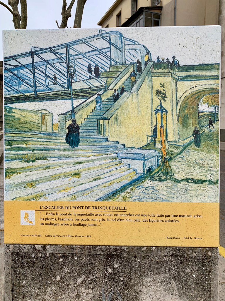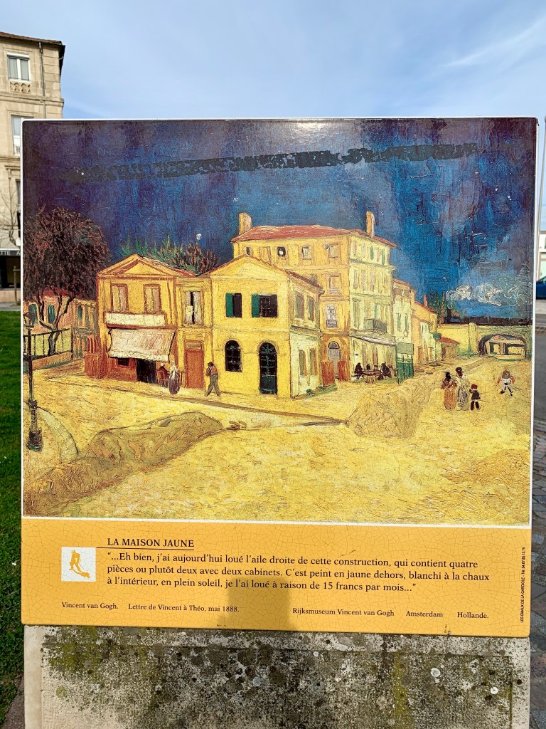 Heute wünschte sich mancher wohl, die werten Vorfahren hätten etwas vorausschauender gehandelt und vom Meister wenigstens das eine oder andere Bildchen für wenig Geld erworben. Stattdessen geistern die fast 200 Gemälde, die in und um Arles entstanden sind, durch die Kunstwelt und die Stadt muss auf billige Reproduktionen zurückgreifen. Diese wurden touristen-freundlich an den Orten des künstlerischen Schaffens auf- und zu einem Van Gogh-Rundgang zusammengestellt, und den bin ich heute rundgegangen.