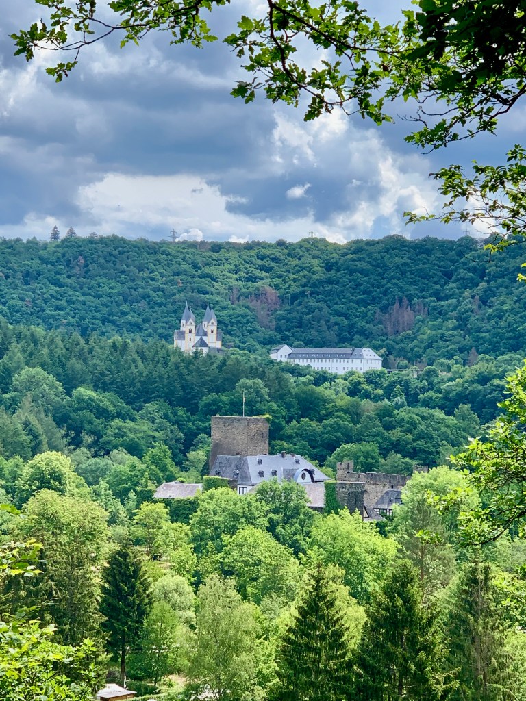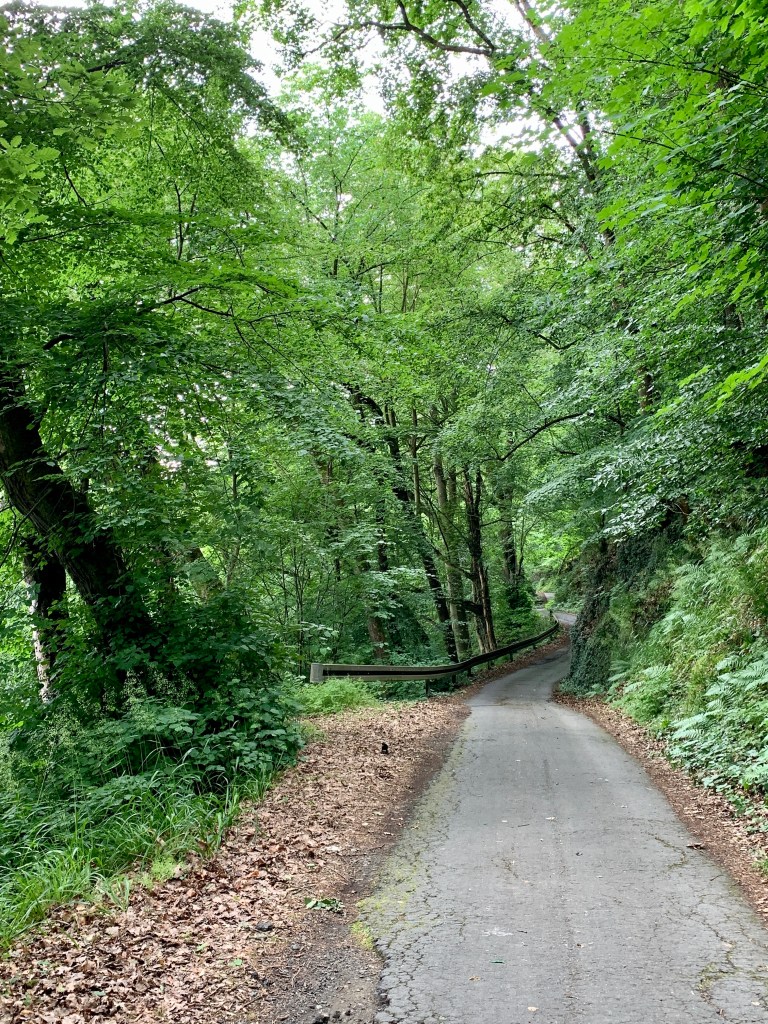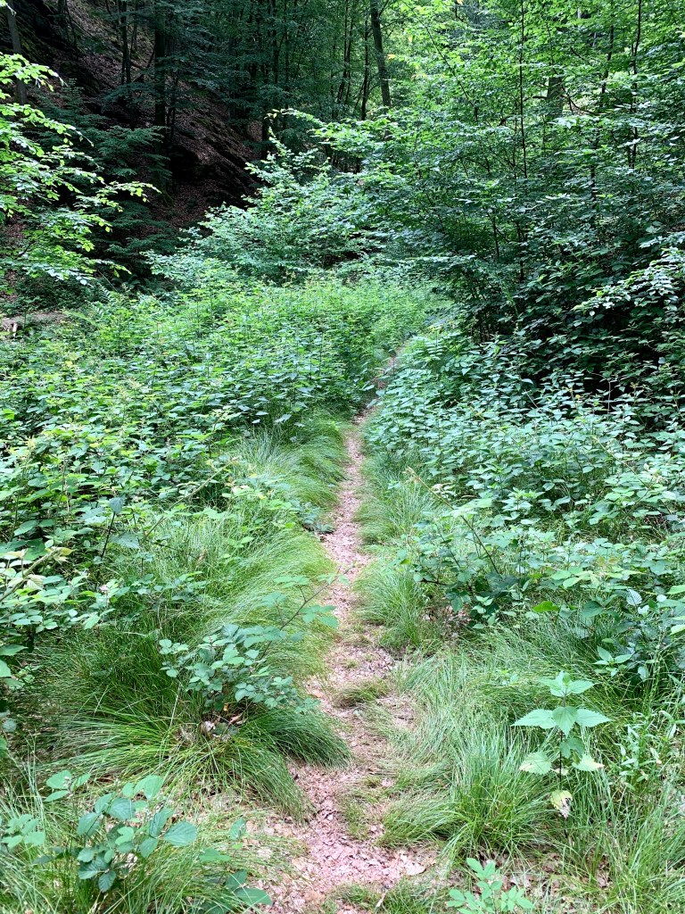 Die Etappe folgte zunächst dem asphaltierten Lahnradweg entlang des Flusses (was zum Wandern ja nicht soo toll ist), auf dem mir erstens doch einige motivierte Radfahrer begegneten und ich zweitens von einem Holzabfuhr-LKW überholt wurde, der sich auf dem schmalen Sträßchen gefährlich nah an der Leitplanke der Talseite entlang hangelte, während ich mich auf der Bergseite an einen Baum klammerte.