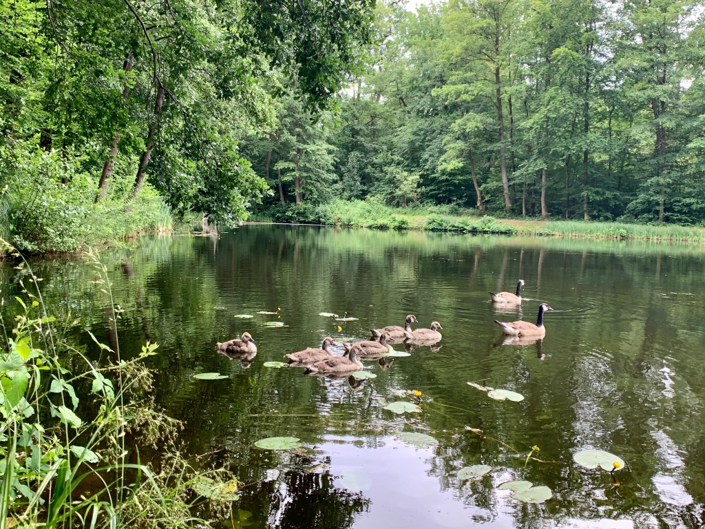 Die ersten Kilometer waren so unspektakulär, dass es davon nur ein verwackeltes Ententeich-Foto von Schweinehund gibt. Typische Naherholungsgebiet-Waldwege, langgezogen und schotterig … und laangweilig.