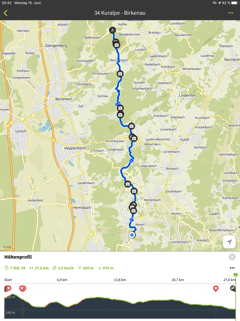 Nach Reichenbach führte mich der Weg weiter durch die Odenwälder Berg- bzw. Hügellandschaft und war wieder mal ein ziemliches Auf und Ab.
