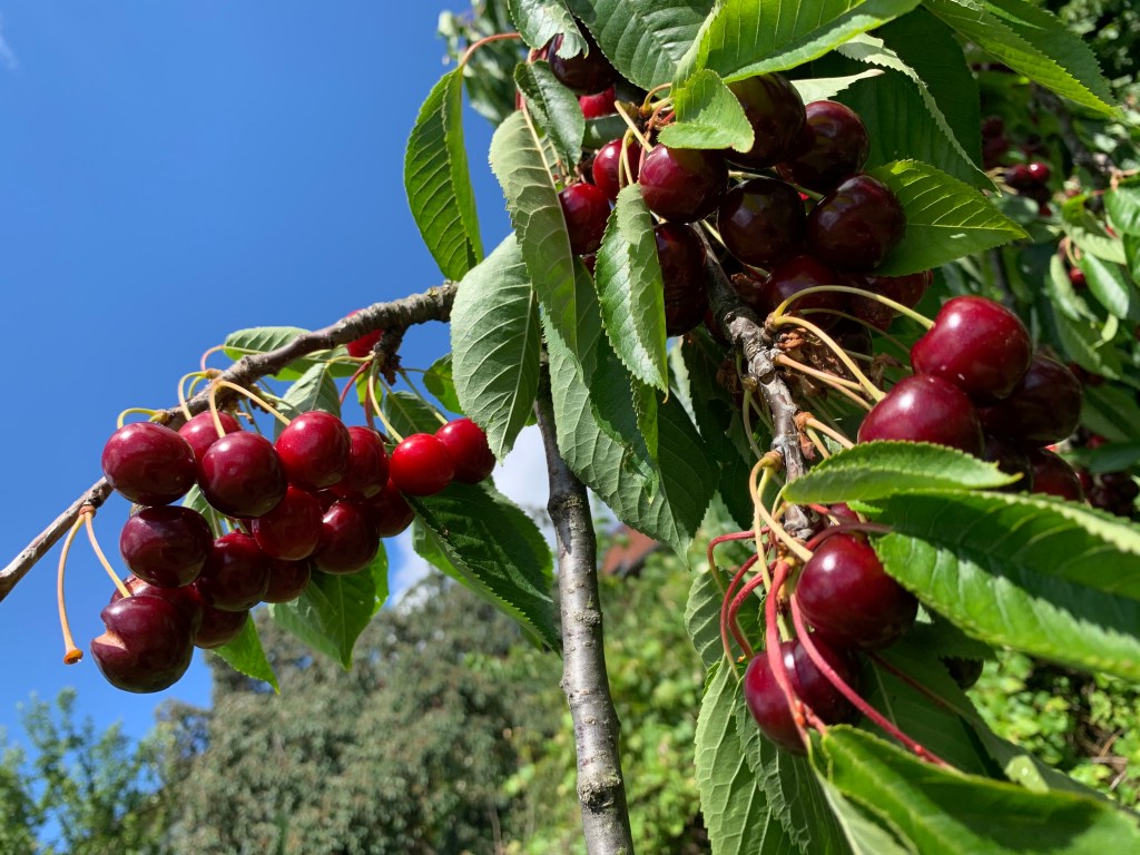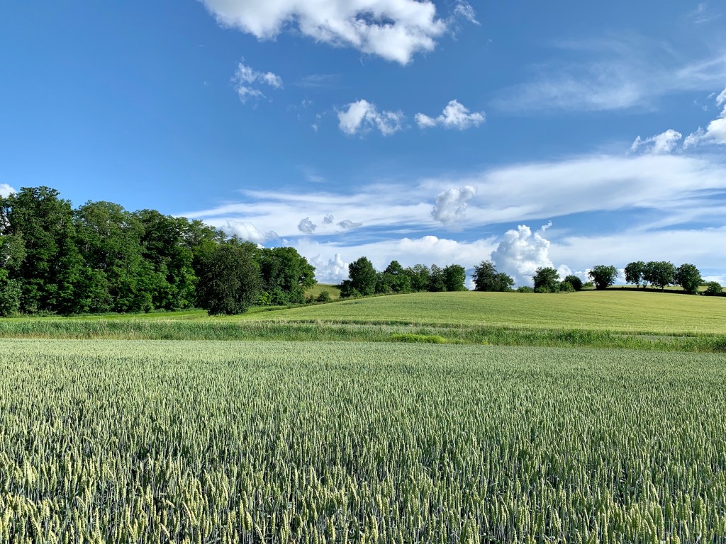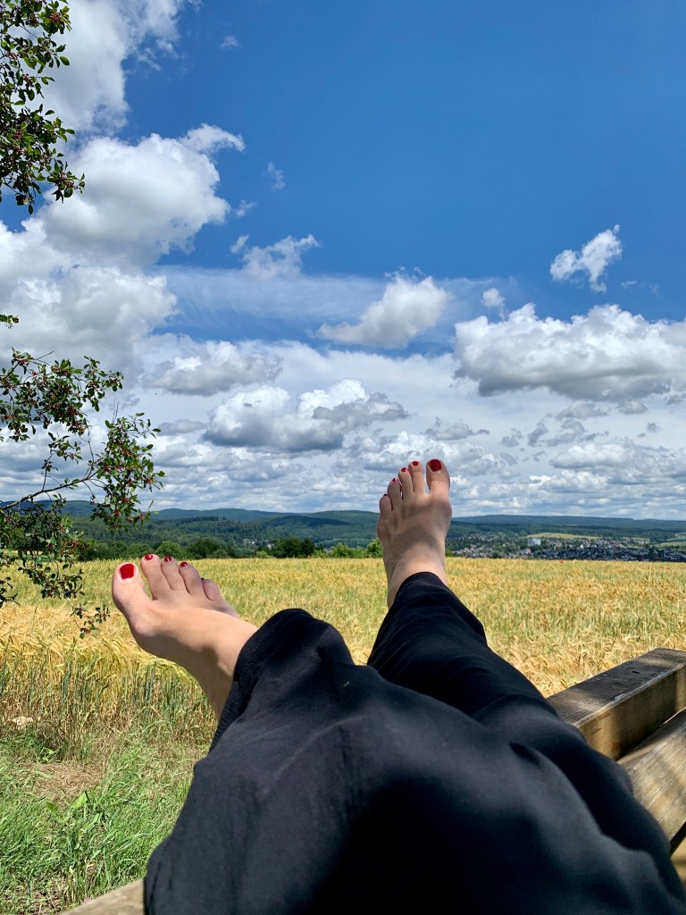 Und dann – schwupp – war ich auch schon raus aus dem Odenwald und drin im Kraichgau, der Toskana Deutschlands. Hügellandschaft, Wein- und Obstanbau, herrliches Wetter (und das wohl nicht nur heute). Was lag da näher, als eine Füße-hoch-Pause mit geklauten Kirschen vom Baum und ner ordentlichen Puccini-Oper auf den Ohren – fehlte nur noch der Rotwein!