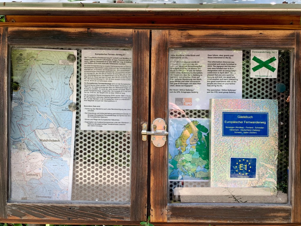 Unversehens fand ich mich in Gaiberg wieder, wo es neben frischem Obst (es war Markttag), einem nicht mehr so frischen Bulli (der stand da schon ne Weile) ein E1-Gedenk-Fenster und einen Wegweiser gibt – initiiert und umgesetzt von der SPD-Ortsgruppe und dem Verein „Aktive Gaiberger“. Toll, oder?