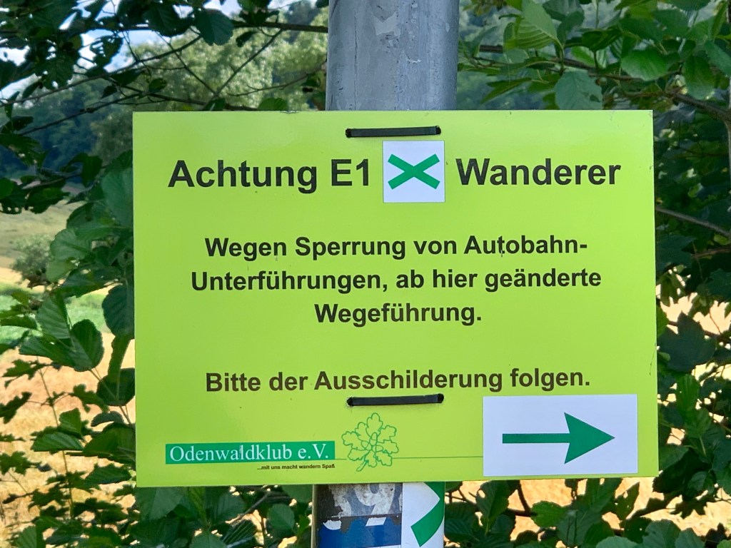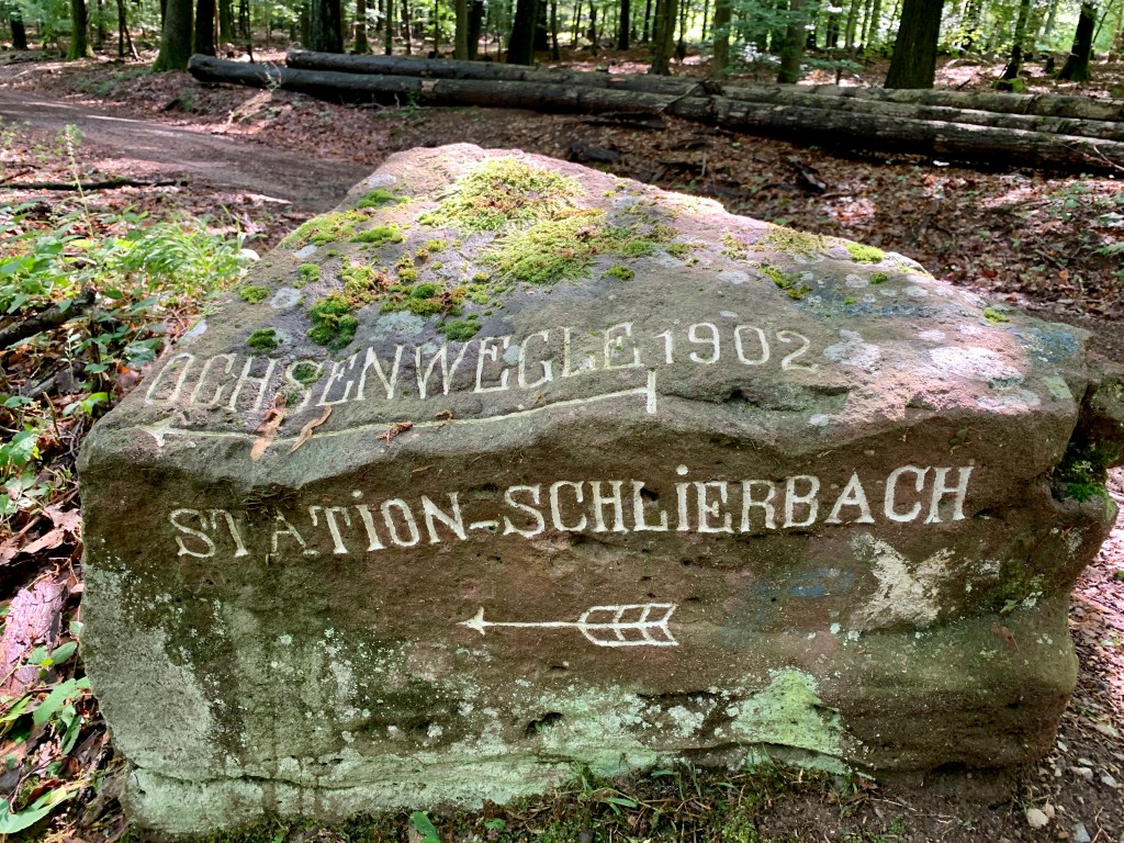 Drüben ging‘s über das Ochsenwegle (kleiner Ochsen-Weg) hinauf in die Odenwälder Höhen. Oben angekommen traf ich auf den örtlichen Förster, der mich zum Zustand des Weges (nach dem starken Regen) befragte, das Wegenetz rund um Heidelberg und den Neckar-Steig würde re-zertifiziert werden (aha) und da müsste alles in Ordnung sein (na klar) …