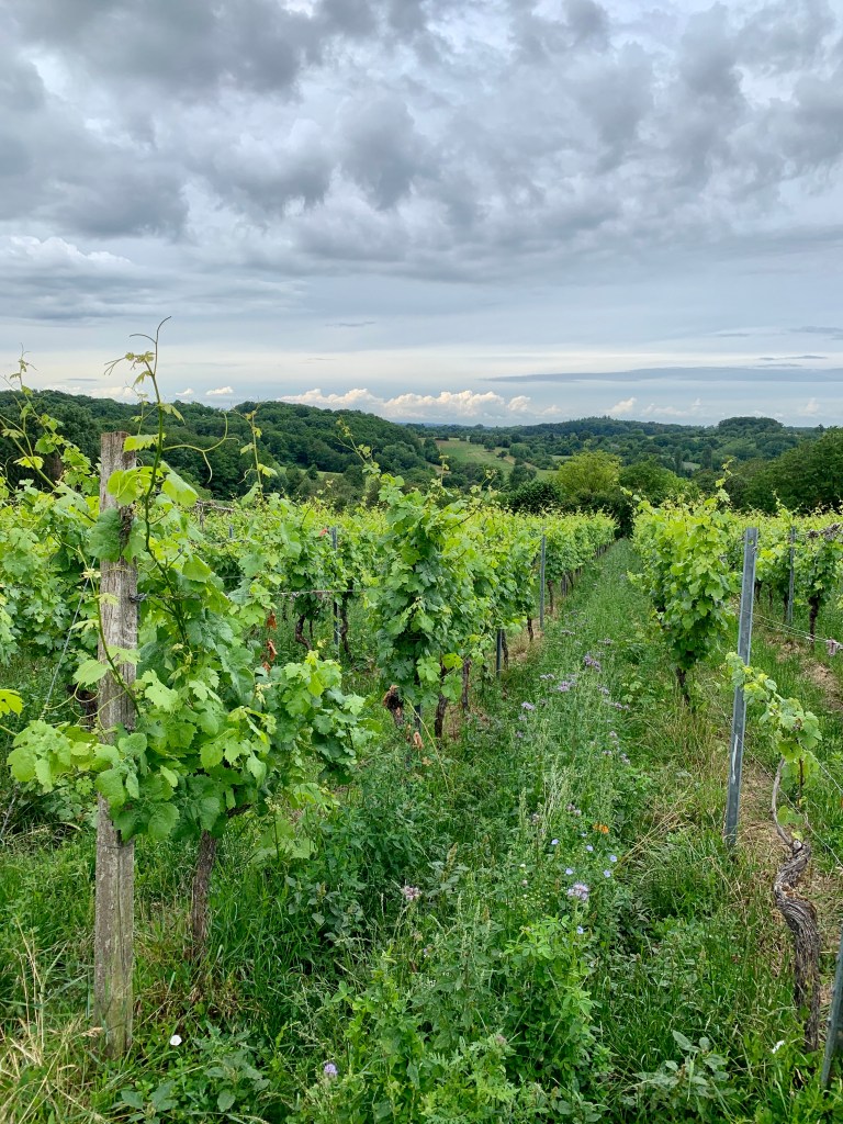 Der E1 war heute so schlecht markiert wie nie zuvor auf meiner Tour, und auch für die Wege scheint sich hier niemand richtig zuständig zu fühlen. Teilweise völlig verwilderte (aber wunderschöne) Graswege und zugewachsene Waldpfade wechselten sich ab mit Wanderwegen durch Feld, Wald, Weinberge.