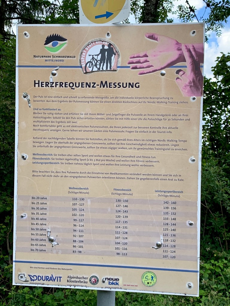 Auf dem Farrenkopf (789 Meter) angekommen, gab es die Gelegenheit zur Herzfrequenz-Messung, deren Ergebnis zeigte, dass ich mittlerweile einen guten Fitnesslevel erreicht habe. Auch schön zu wissen! Schweinehund muss noch ein bisschen an sich arbeiten…