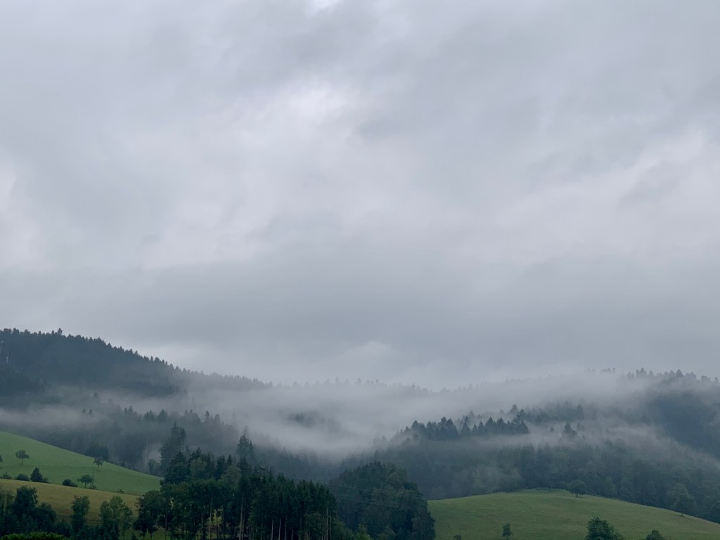 Es galt, 1.200 Höhenmeter hinauf zu klettern in die Höhen des Südschwarzwaldes: 22 Kilometer hin zu einem Ort namens Wilhelmshöhe, in the middle of nowhere, wo es kein Netz nicht gibt und nur ein instabiles Wlan aufm Gasthof-Flur (wo ich gerade nachts um halb zwölf im Dunkeln sitze, während alle anderen schon den Schlaf der Wandergerechten schlummern).