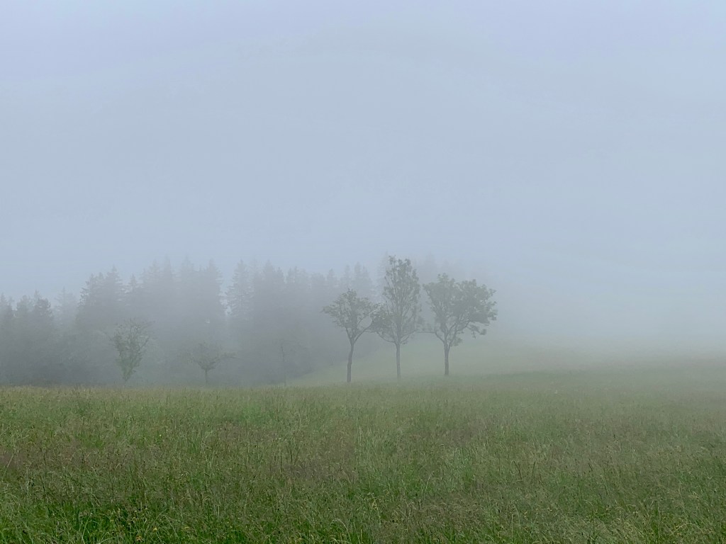 Die Etappe ging gewohnt abwechslungsreich durch Moore, Wälder und über Wiesen bis zum Gasthof am Brend (das ist ein Berg), wo uns schon wieder nach einem kleinen Päuschen war. Der Elsässer Flammkuchen war lecker. Beim Marillenschnaps waren wir uns erst nicht sicher, so dass wir noch einen zweiten probieren mussten. Nachdem es DANN wieder in STRÖMEN regnete, mussten wir uns mit einem dritten Mut antrinken und wagten uns dann in voller Regenmontur nach draußen. Es entstanden Bilder wie in den schlimmsten Februar-Tagen!