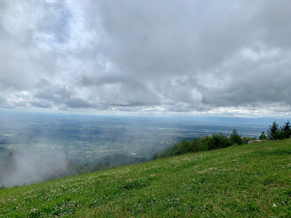 Auf dem Blauen angekommen, lichtete sich doch tatsächlich gerade der Nebel und gab es Blick frei Richtung Basel, die Vogesen und die Rheinebene – beeindruckend! Gerne wär ich für mehr Nebellichtung noch geblieben, aber erstens pfiff mir dort oben der Wind ganz schön um die Ohren und zweitens wars schon spät.