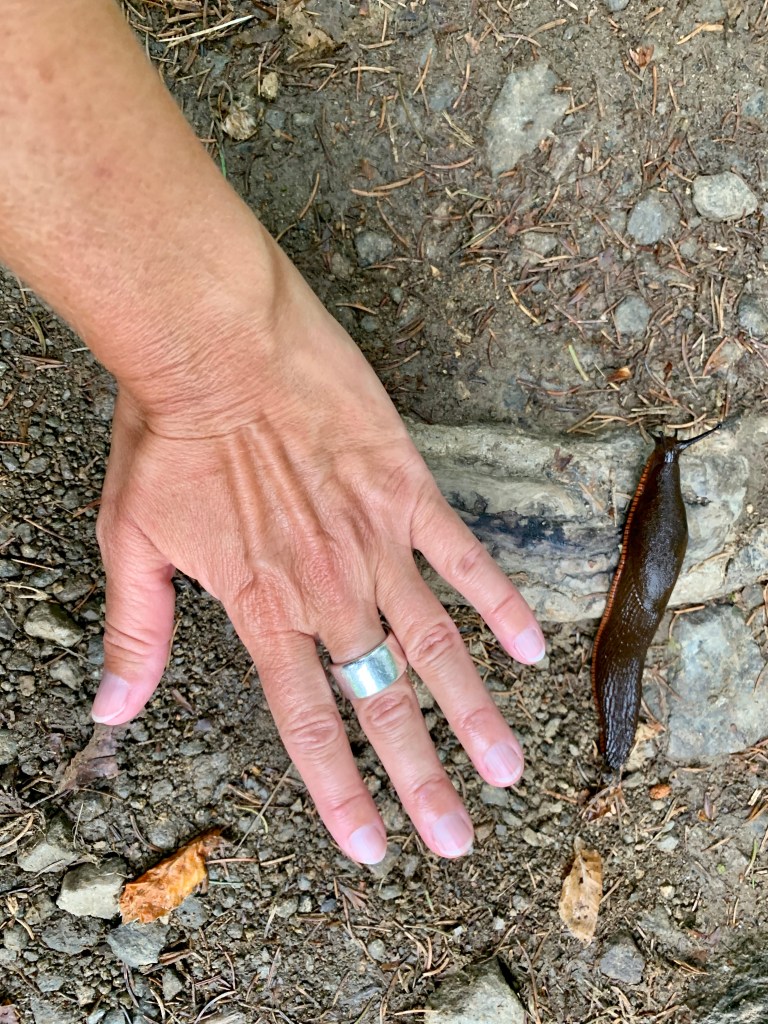 A propos Vogel: Wie man sieht gedeihen Mensch und Tier prächtig im neblig-grauen Schwarzwald. Schnecken und Würmer erreichen Größen, die wirklich beachtlich sind. Schweinehund machte sich den ganzen Tag über einen Spaß daraus, jeweils NOCH längere und größere Tiere aufzuspüren.