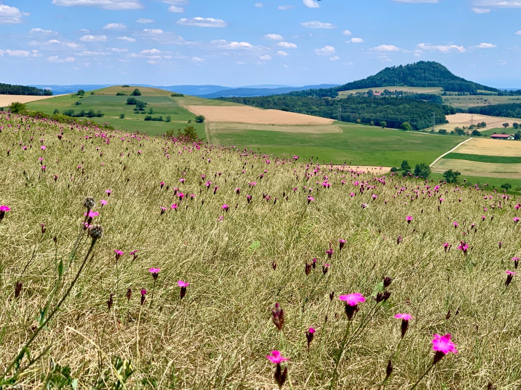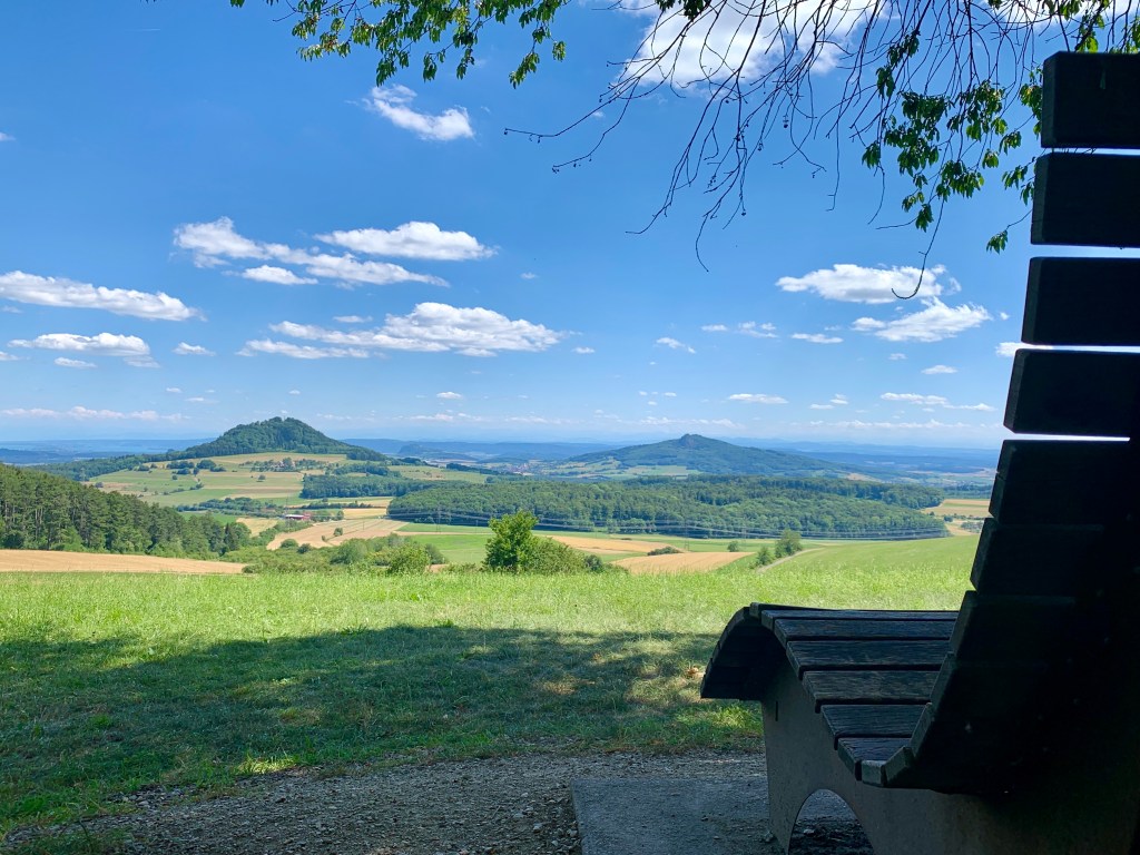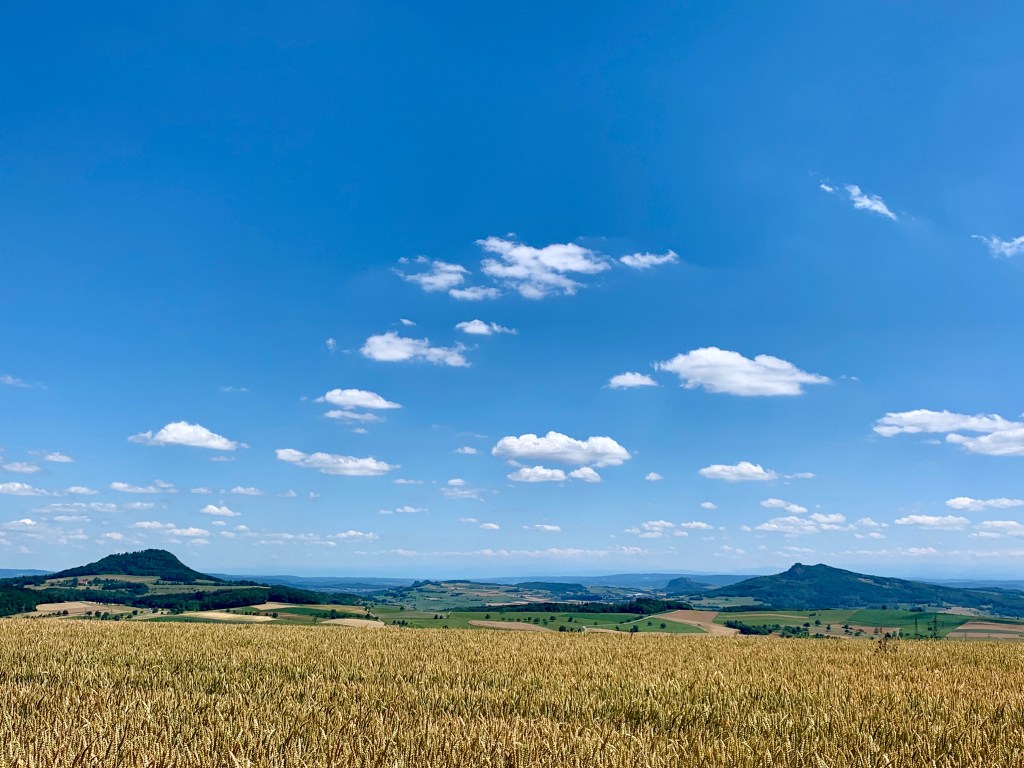 Und dann waren wir auf einmal in der Hegau mit ihren „vulkanisch geprägten Hegauer Kegelbergen“ (Wiki), die sich pittoresk aus der Landschaft erheben und wiederum zum Fotografieren und zu reichlich Himmelsliegen-Pausen einladen.
