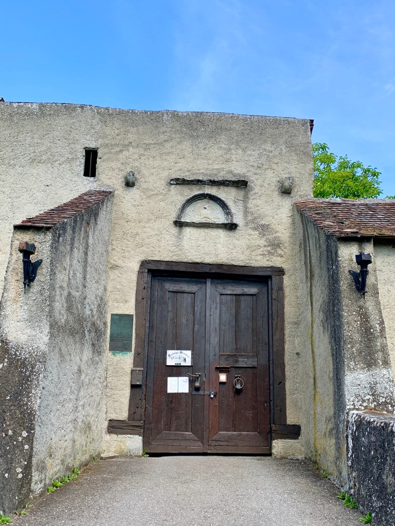 Einen kurzen Hoffnungsschimmer gab es beim Friedlinger Schlössle, das mit einem schönen Rückblick auf die sieben Berge aufwarten konnte und außerdem mit einer Burgschänke, in der laut Aushang lustige Rittertafeln stattfinden. Heute jedoch waren ihre Tore bedauerlicherweise verschlossen, weswegen ich Schweinehund und mich mit einer halben Tüte Saure Pommes von der Tanke tröstete – die liebt er!