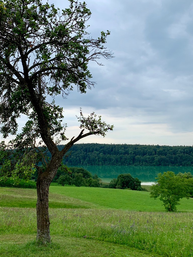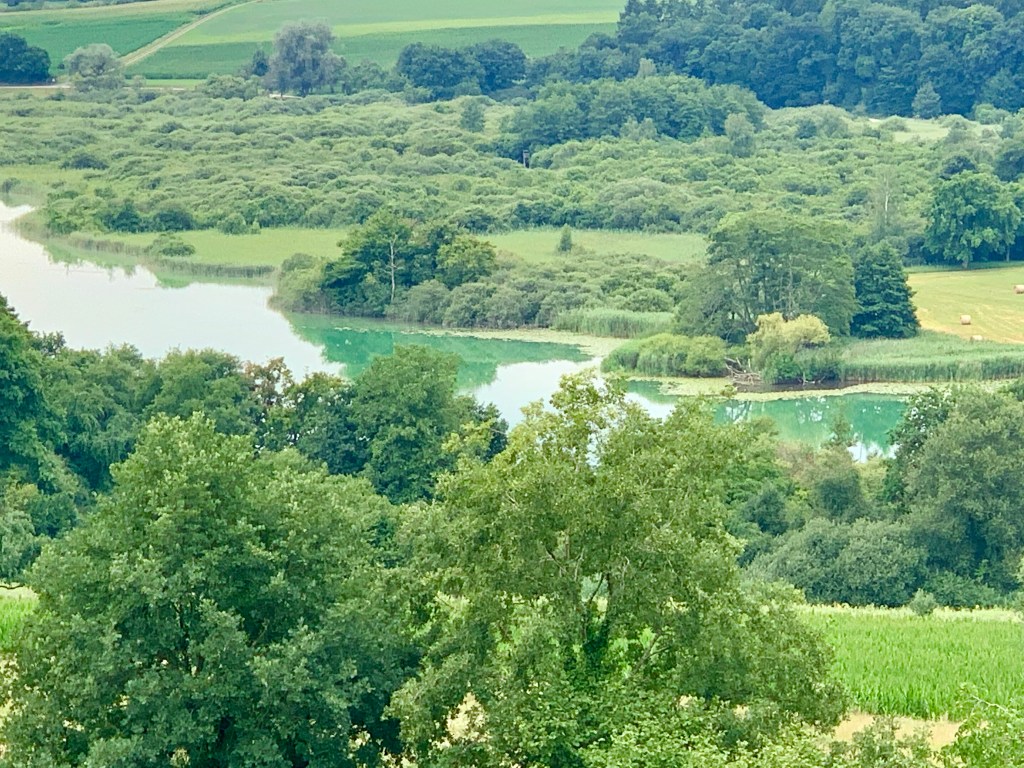 Bei zwar trockenem aber blassgrauem Wetter ging es dabei viel durch Wald, vorbei an hübschen Seen und Weihern und immer wieder auf eine Anhöhe mit potenzieller Aussicht auf Bodensee und Alpen.