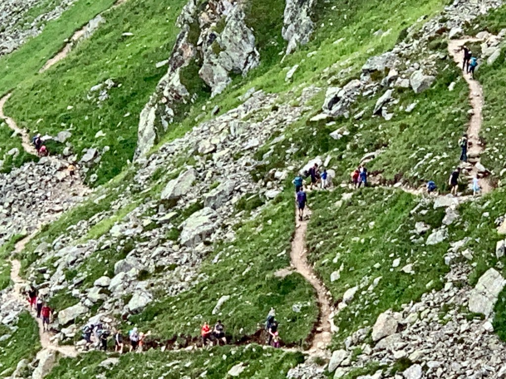 Also ging‘s flugs über die Scharte und auf der anderen Seite wieder runter, wo ich nicht nur im nächsten Schigebiet, sondern auch auf der tagestouristischen Autobahn landete, dem Murmeltiersteig.
