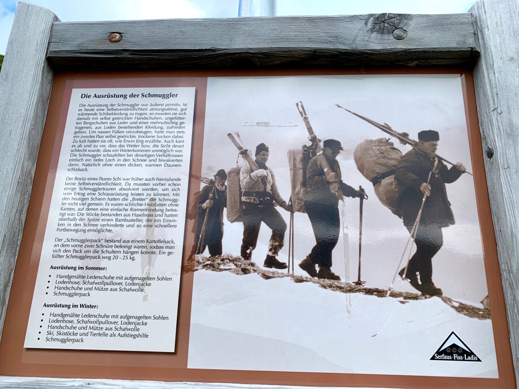 Nach einer kurzen Pause am dennoch beschaulichen Furglersee führte der Weg weiter durch Schigebiets-Landschaft und über den Schmugglersteig (wo man allerlei Wissenswertes über die alte Schmuggler-Route erfuhr) zur Hexenseehütte.