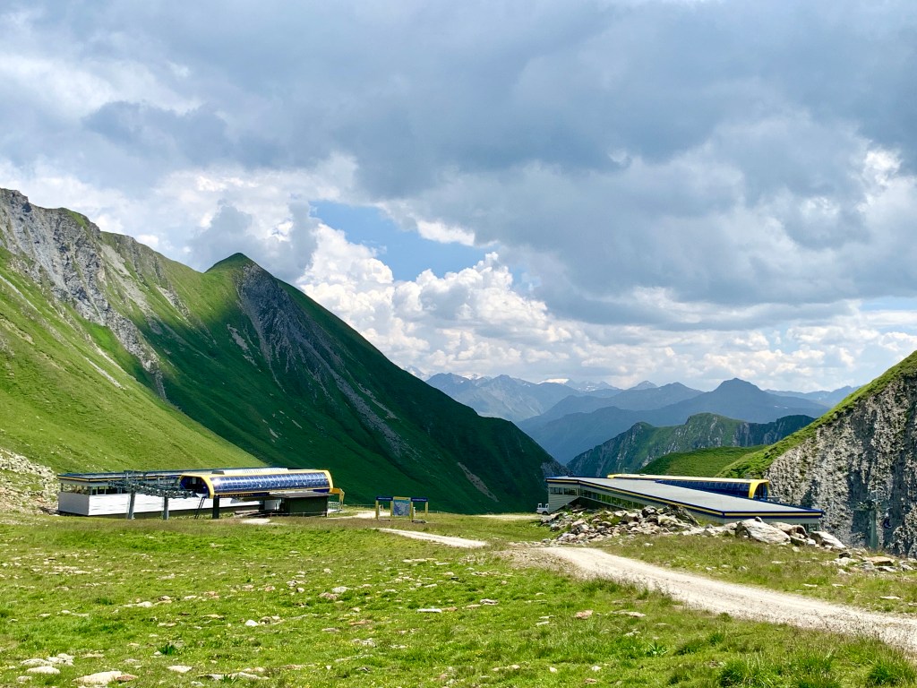 Auch sonst war die Hütte, sagen wir, anders. Es ist – wie gesagt – eine Hütte im Schigebiet und macht als solche ihren Hauptumsatz im Winter. Das hat zur Folge, dass man schon selbst aktiv werden muss, wenn man was zu trinken haben möchte (und nicht ständig gefragt wird), dass, sagen wir mal vorsichtig, das Gästevolk ein anderes ist (siehe oben) und dass die Wirtsleute nichts bis wenig zu den Sommerwanderwegen sagen können. Auf meine Frage, wie ich denn Pfunds (im nächsten Tal) am besten erreichen könne (denn dort war ich einmal mehr mit dem Bruder verabredet), erntete ich nur große Augen und den Hinweis, da hätten sie jetzt auch noch NIE jemanden gehabt, der SO weit laufen wollte. Äähh… ach so?!