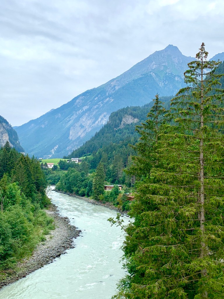Also schulterte ich wieder mal mein Rucksäckle und wanderte bei sonntäglichem Glockengeläut hinaus aus Pfunds und entlang des Inns Richtung Reschenpass. Das Wetter war kühl-bedeckt und für später waren Regen und Gewitter angesagt.