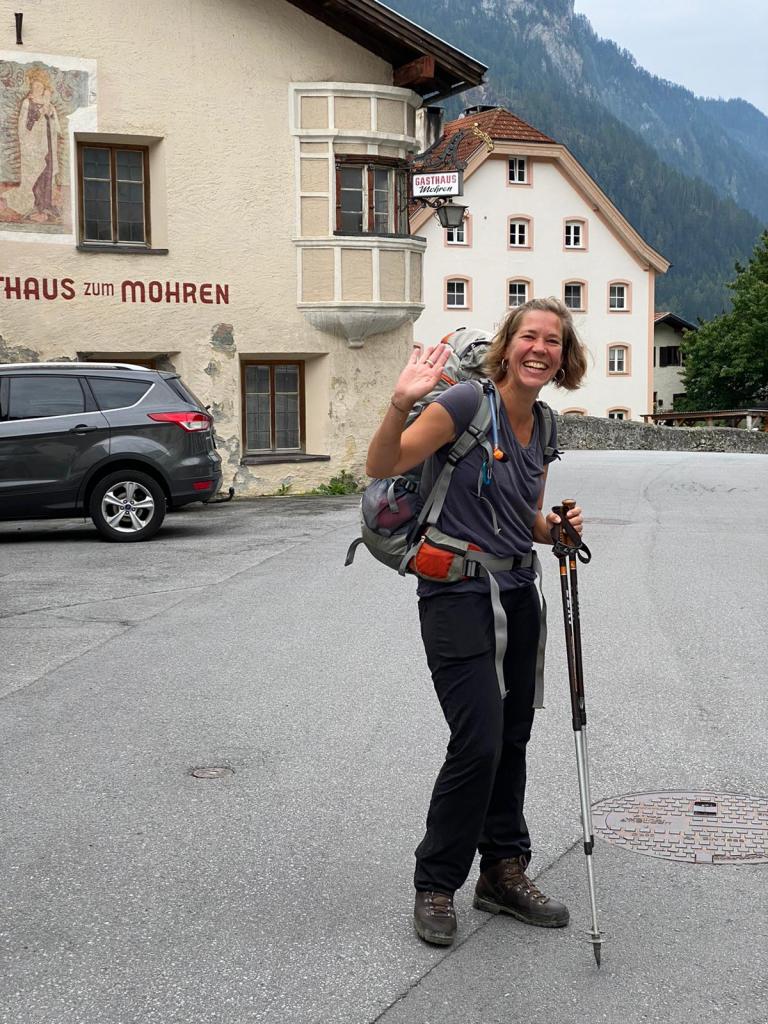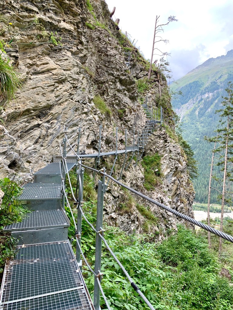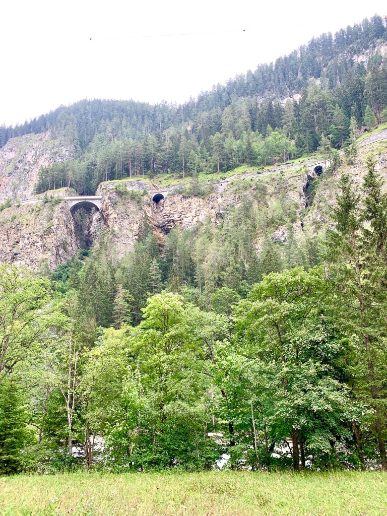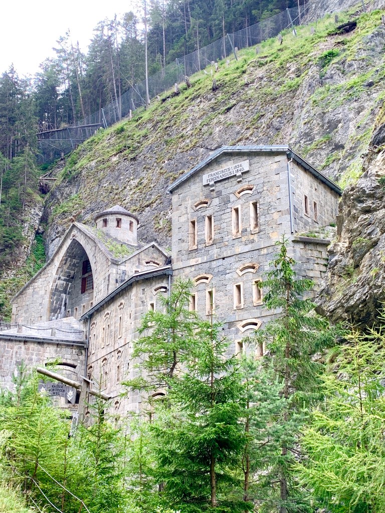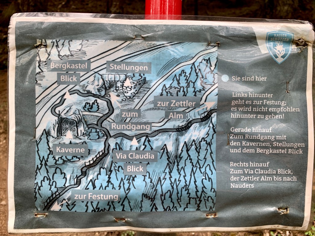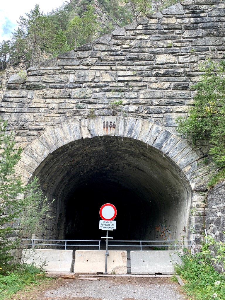 Sie tat dies in Form eines Weges (wo wir die Via Claudia Augusta verloren haben, ist mir schleierhaft), der direkt an der Reschenpassstraße entlang führte (fassungslose Autofahrer), dann durch ein altes Tunnel (eigentlich gesperrt), über Steinschlagschutt (auch verboten – aber Leute, da war kein anderer Weg, ich schwöre!) bis hin zur Festung Nauders.