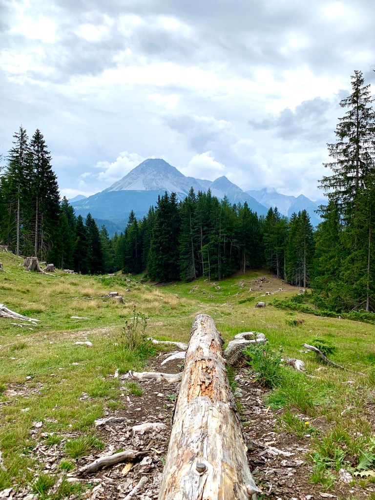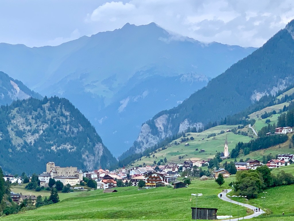 Gestern durften wir das alles bei herrlichem Wetter genießen, waren ja aber mit dem Auto des Bruders (ja, mein eigener leiblicher Bruder) unterwegs. Heute nun war die dazugehörige Fußmarschetappe dran: Von Pfunds nach Reschen, 25 Kilometer, 1.000 Hm rauf.