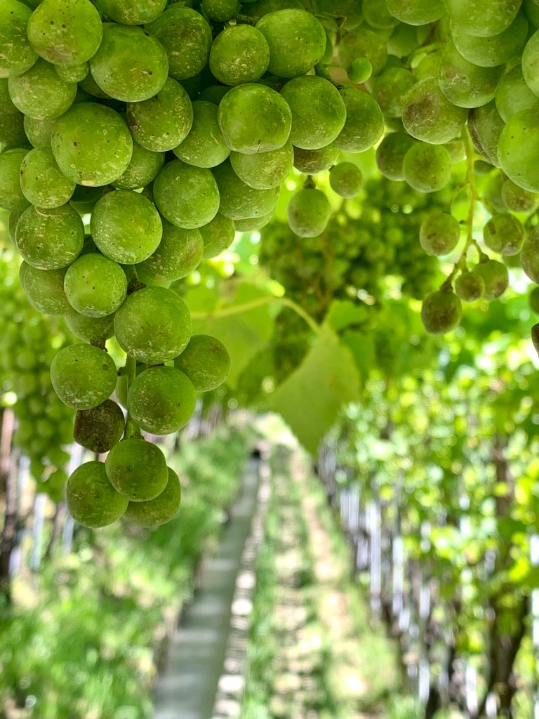 Schweinehund hatte eine RICHTIG gute Zeit da am Latschanderwaal! Der Pfad war halbschattig und abwechslungsreich, immer wieder gab‘s Felsentunnels und Wasserfällchen und zum Schluss hingen uns gar Schlaraffenland-mäßig die Trauben nahezu in den Mund. Die diesjährige Ernte ist auf einem guten Weg! Einziger Wermutstropfen – dies nur der Vollständigkeit halber – war die Dauerbeschallung von der Schnellstraße unten im Tal, aber da hab ich jetzt auch keine schnelle Lösung.
