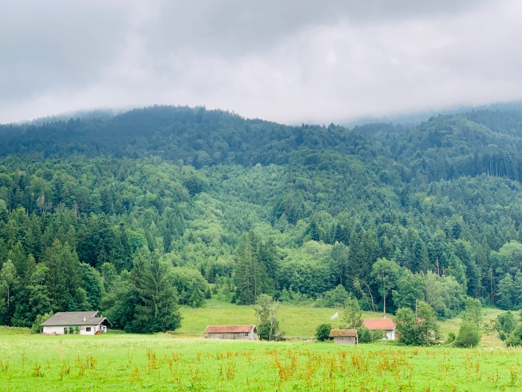 Es grüßte recht freundlich, um mich anschließend in ein Gespräch zu verwickeln, in dessen Verlauf er mir aus seinem bewegten 85-jährigen Leben im Dorf nebenan erzählte. Unter anderem davon, wie er am Berghang gegenüber (siehe Bild) kurz nach dem Krieg Skifahren lernte, dort, wo später dann ein Lift gebaut wurde und er über Jahrzehnte als Skilehrer arbeitete. Derselbe Lift verschwand vor einigen Jahren mit einem reichen Russen gen Osten, Sibirien oder so. Seitdem (Schnee gibt‘s eh nicht mehr) wuchert neuer Wald über den Skihang – die ehemalige Pistenschneise ist aber noch erkennbar und die Liftstation gibt’s auch noch.