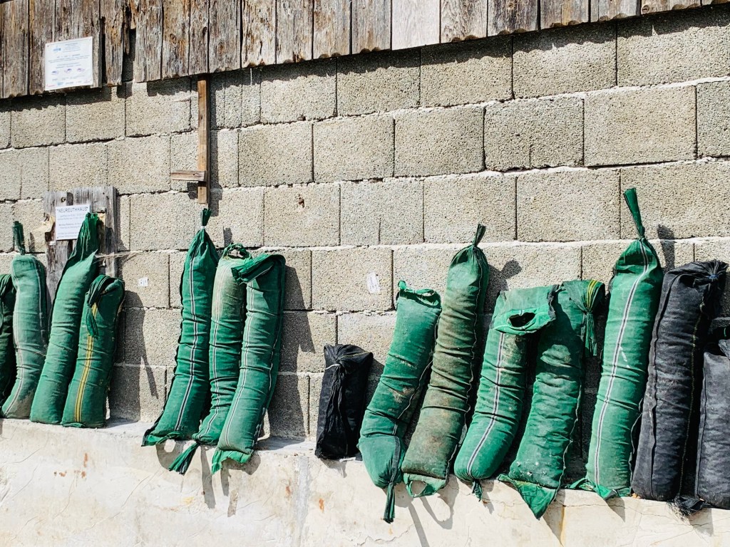 Dort legte ich mal eben meine Füßchen hoch, versorgte mich bei REWE mit ein paar Mannerschnitten für unterwegs (Schweinehund braucht das) und bog ab, rauf den Berg, 560 Höhenmeter Richtung Neureuth. Der Weg führte mich zunächst an ein paar Skurrilitäten vorbei, einer uralten Tankstelle und an Sandsäcken, die nach ihrem Einsatz beim letzten Starkregen in der Sonne trockneten.