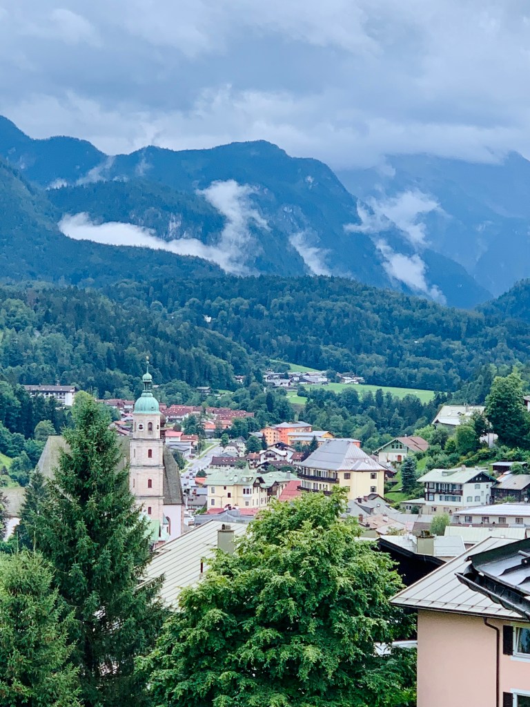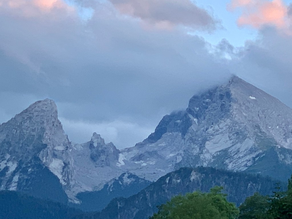 Berchtesgaden empfing uns in aufgelockerter (Wetter-) Stimmung, und sogar der Watzmann grüßte kurz durch die abendlichen Wolken. Routiniert erledigte ich mein Waschsalon-Programm (das ziemlich nötig war) und speiste hernach aufs Feinste am Marktplatz zu Abend.