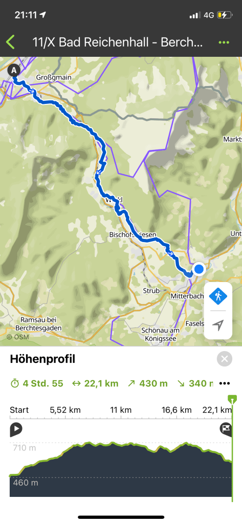 Gestern (5. August 2021) war tatsächlich schon der letzte Tag meiner Wanderung von München nach Berchtesgaden; der vorerst letzte mit Schweinehund und Frau Komoot alleine. Katerstimmung (schon wieder?!) und Abschiedsschmerz machen sich breit, heute, am Ruhetag in Berchtesgaden, bevor dann morgen ein neues Abenteuer beginnt. Damit das hier nicht zu emotional wird, nochmal eben der Wander- und Wetterbericht von gestern – auch der Vollständigkeit halber. Die letzten 22 Kilometer standen an.