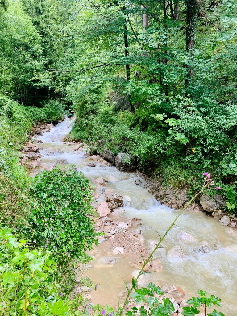 Hinaus aus dem Städtchen hätt’s so schön sein können. Entlang der glasklaren Bischofswiesener Ache, durch den lichten Wald, vorbei an Wasserspielplätzen und Kneippbecken, aber ach, es war die Hölle, und zwar die Mückenhölle!