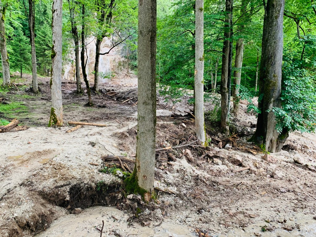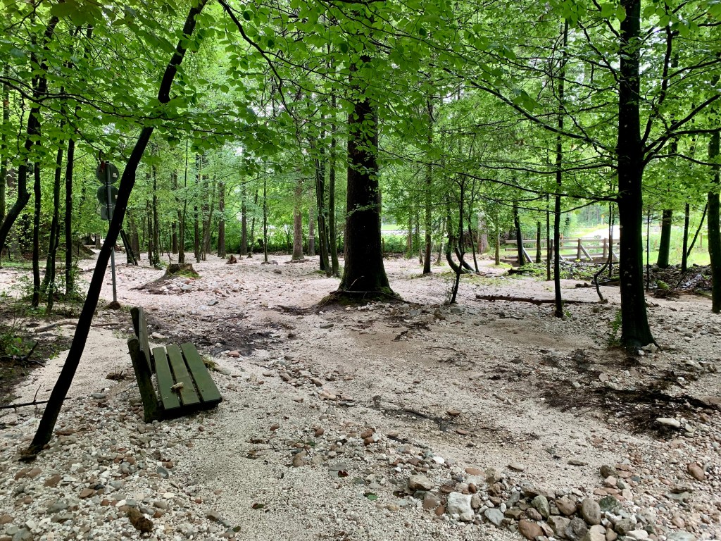 Etwa nach der Hälfte der Strecke kam ich an den ersten sichtbaren Starkregenschäden vorbei. Da hatte das Wasser ganz schön gewütet! Und wieder mal kam ich auf dem eigentlich gesperrten Wanderweg von hinten. Das scheint jedoch in vielen Fällen, so habe ich neulich gelernt, eine eher versicherungs- als gefahrentechnische Angelegenheit zu sein. Und man kam auch überall problemlos durch.