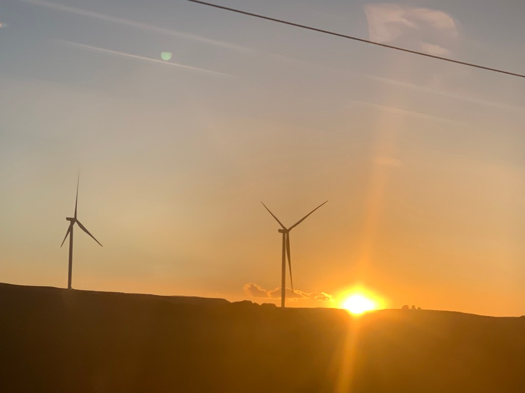 Mir war nicht klar, dass das spanische Inland hauptsächlich aus steppeartiger Pampas besteht. Bis auf ganze Wälder von Windenergieanlagen herrscht dort gähnende Leere bis beängstigend-tote Mondlandschaft. Da war es gut, dass die Sonne unterging und die Landschaft in ein gnädiges Dunkel tauchte.