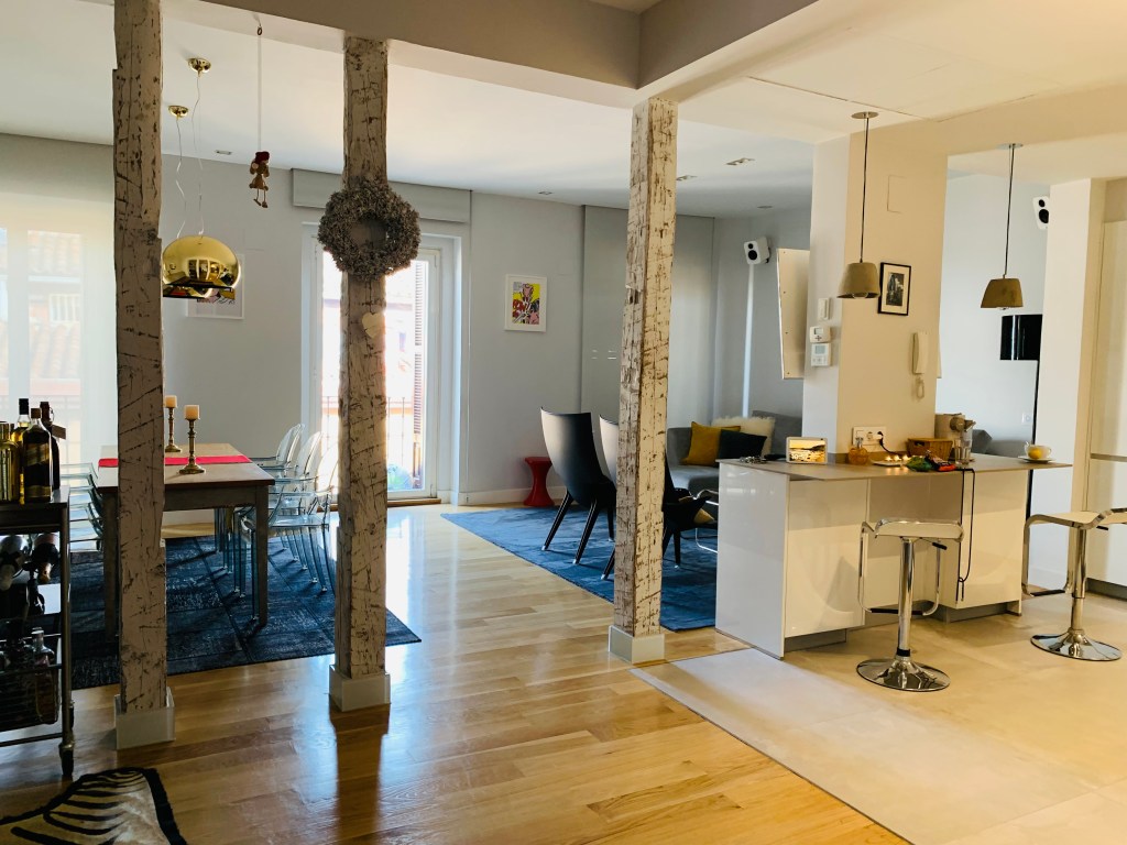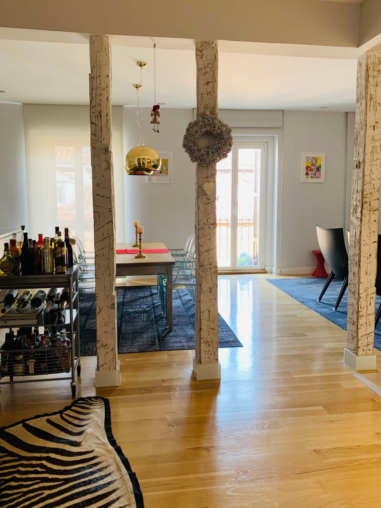 Um es vorweg zu nehmen: Wir sind in Ronda, einer mittelgroßen Stadt mitten im zauberhaften Andalusien. Doch bevor es mit dem heutigen Tag weitergeht, hier noch der Nachtrag von gestern: Unser Zug sollte Madrid erst nachmittags gen Süden verlassen, und so hatten wir alle Zeit der Welt, mit den beiden Schnuckels noch ein Käffchen zu trinken – dabei hab ich nochmal eben zwei Schnappschüsse von der Wohnung gemacht (man sehe selbst):