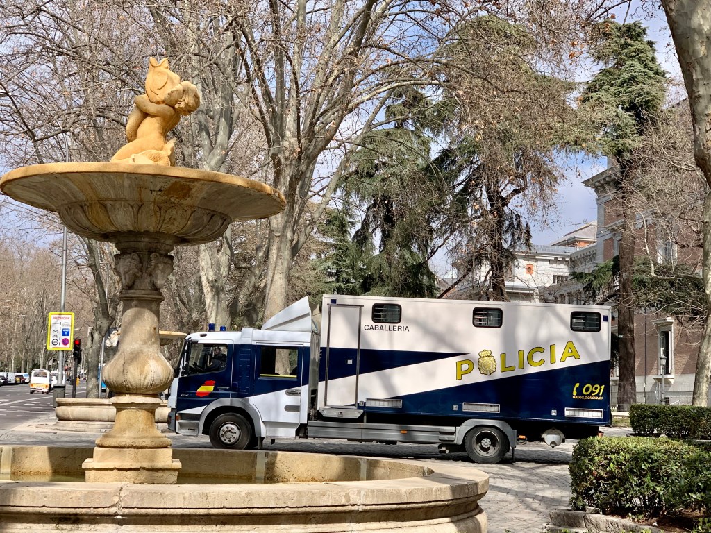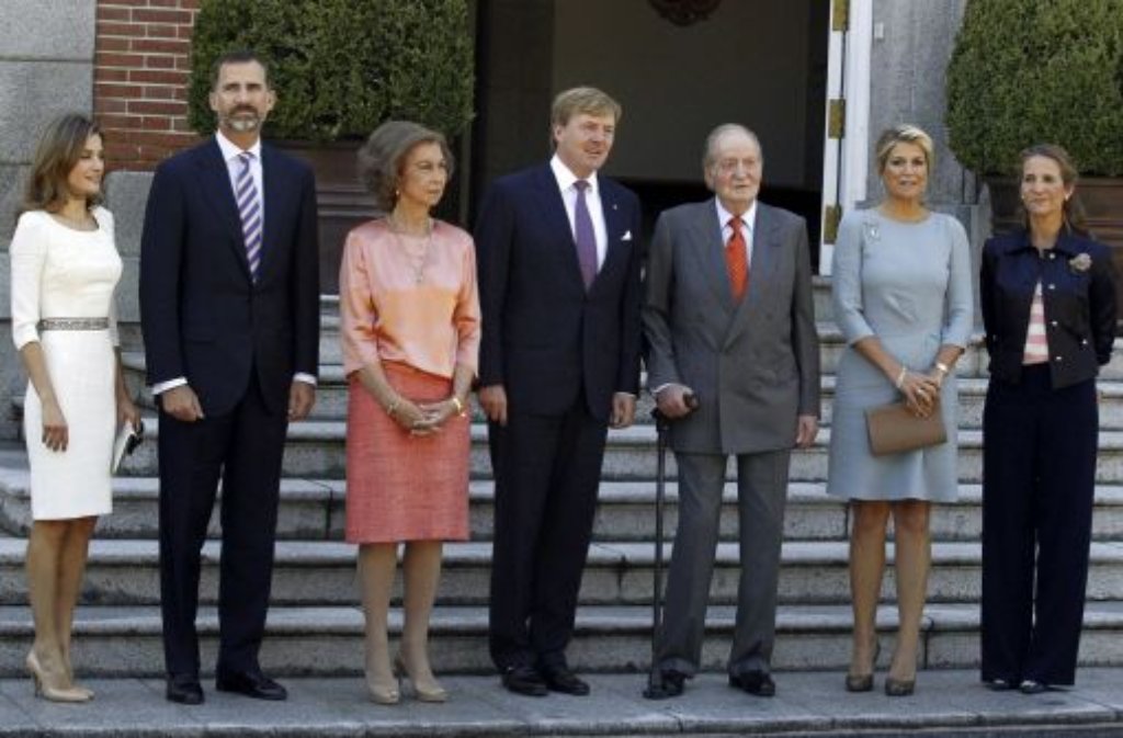 Auf dem Weg zum Bahnhof stolperten wir außerdem über die Vorbereitungen für hohen Besuch aus den Niederlanden. Absperrgitter, Polizei und Presse standen schon mal bereit für Willem-Alexander, der – so las ich in der Presse – nebst Gattin Maxima mal eben flugs aus Holland herunter geflogen war, um Juan Carlos „Hallo“ zu sagen (wahrscheinlich war deswegen gestern auch das Schloss dicht). Auf die Live-Bilder konnten wir sehr zum Leidwesen von Frau Komoot (die hat einen Faible für royalen Klatsch und Tratsch) leider nicht warten – die habe ich nachträglich aus dem Netz gemopst.