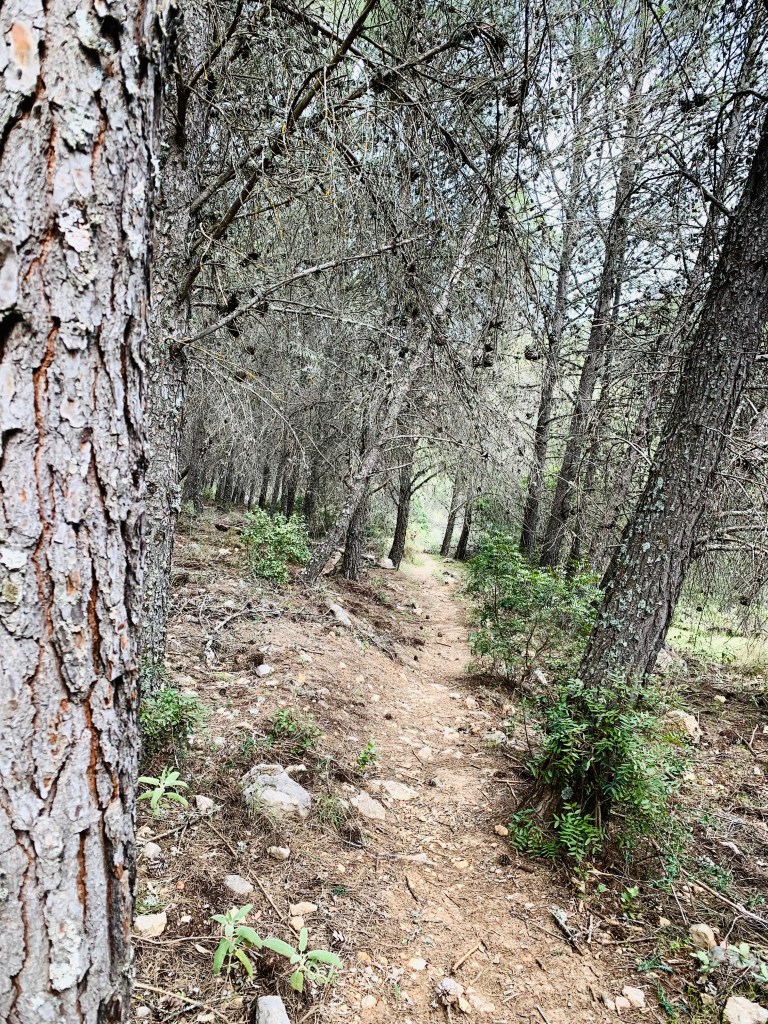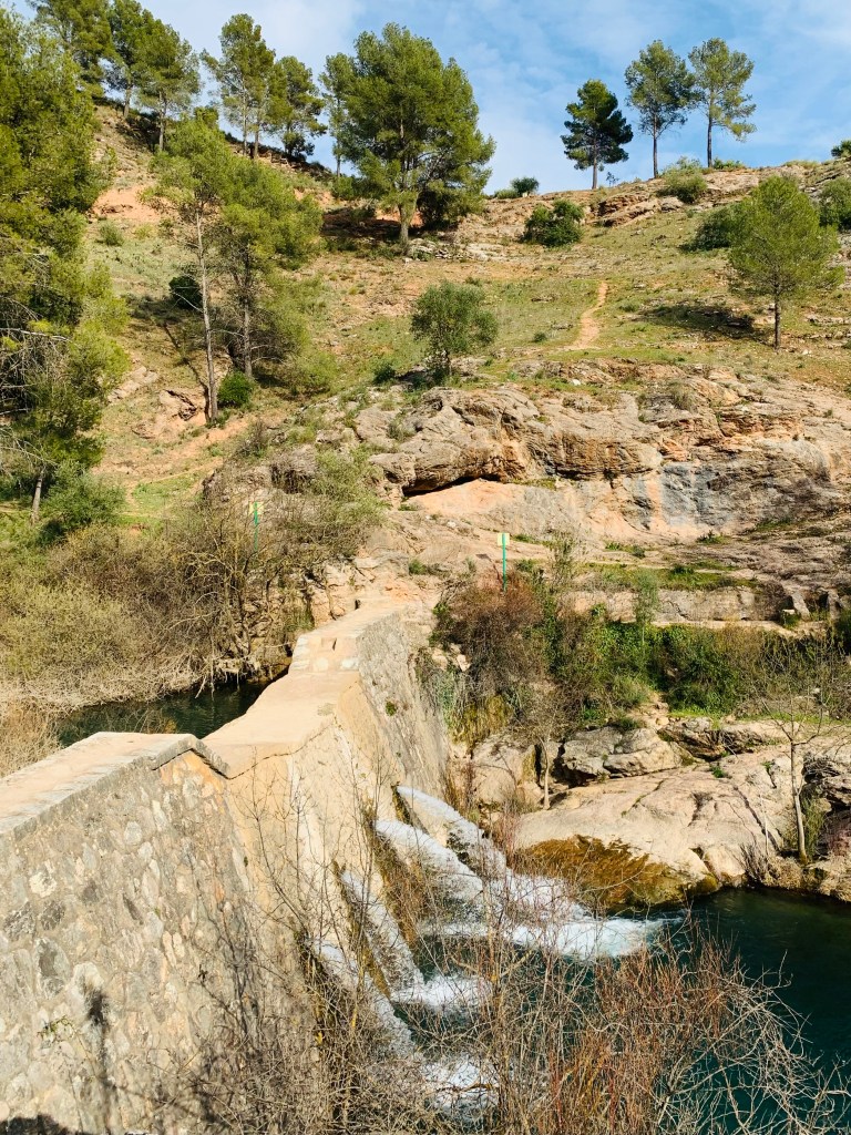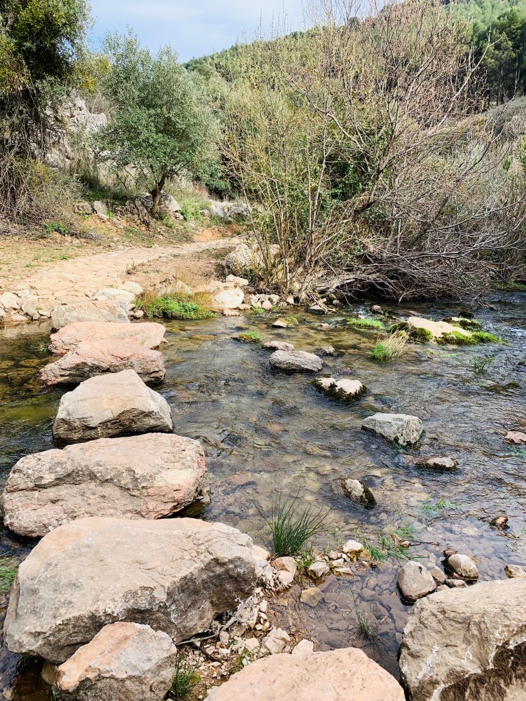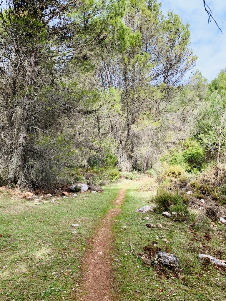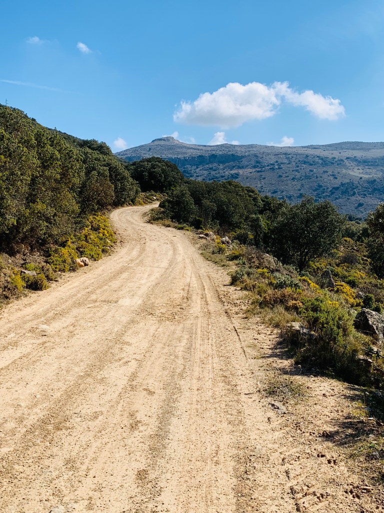 8,5 Kilometer vor El Burgo stießen wir dann wieder auf einen Fahrweg. Den hätten wir die restliche Etappe entspannt bergab rollen können, wenn nicht Frau Komoot ein hübscheres Wegchen direkt an einem Bachlauf entdeckt hätte. Schweinehund war keineswegs begeistert von dieser Idee, weil ihm nämlich zu diesem Zeitpunkt schon ganz schön die Pfoten weh taten. Ich jedoch fand die Idee recht verlockend und so bogen wir scharf links ab. Schon bald wurde klar, dass wir das besser gelassen hätten, da der Weg zwar äußerst hübsch, jedoch ein fürchterliches Auf und Ab war.
