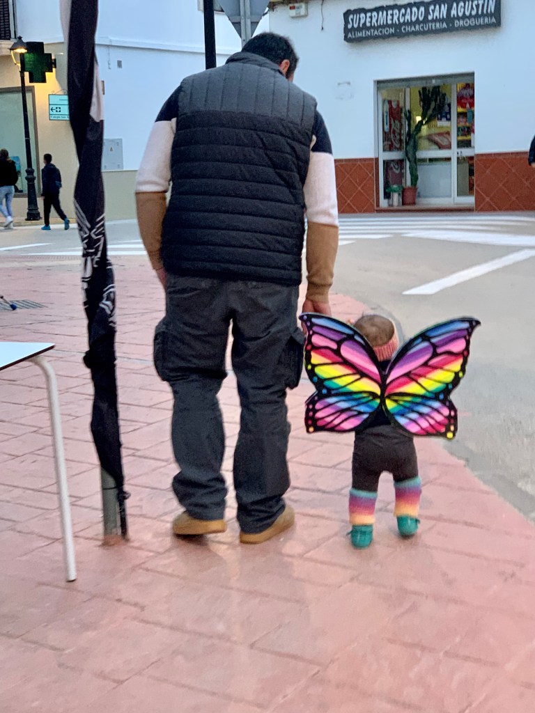 Um es kurz zu machen: Wir erreichten El Burgo ziemlich erschöpft gegen halb sechs und bezogen dankbar unser Hotelzimmer mit Badewanne, die Schweinehund und ich gleich ausgiebig nutzten. Danach schlitterten wir auf der Suche nach etwas zu essen erst in den dorfeigenen Carnaval Infantil (Kinderkarneval – überall Feen und Spidermen) und danach in eine Bar mit Einheimischen, wo es frittierten Tintenfisch (erst ab acht Uhr – Augen roll), Cerveza (schon früher – yeah!) und gratis dazu einen Stromausfall gab. Es war mal wieder herrlich! Schade nur, dass wir uns sprachlich so wenig verstehen, die Spanier und ich.
