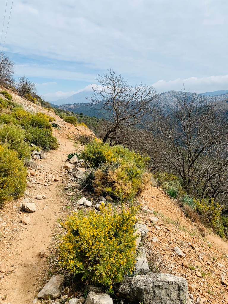 Der Weg führte pfadig bergauf und -ab, und plötzlich brachen vier junge Spanier in Tarnkleidung und Armee-Rucksäcken direkt vor mir aus dem Unterholz. Sie entschuldigten sich wortreich für den Schreck, den sie mir eingejagt hatten, und fortan begleitete mich ihr spanisch-kehliges Geplapper in einiger Entfernung auf meinem Weg (ist auch mal ganz nett, wenn man sonst mutterseelenallein in der andalusischen Bergwelt unterwegs ist).